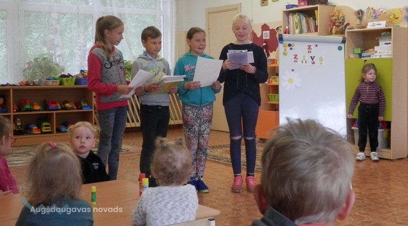 Turpinot brīvā laika animāciju GRĀMATAS CEĻŠ PIE LASĪTĀJA, jaunie bibliotekāri viesojās bērnudārzā un mazos lasītājus iepazīstināja ar jaunajām bērnu grāmatām.