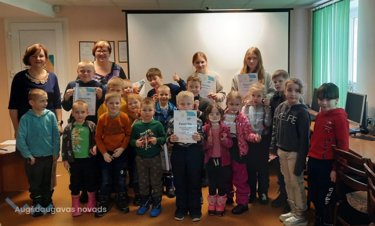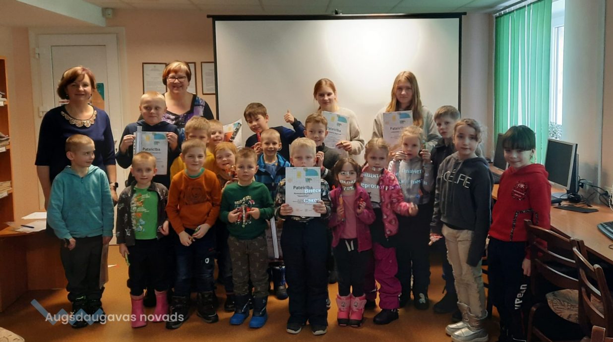 Pasākumā pārrunājām par izlasītajām grāmatām, noteicām visskaistāko un visinteresantāko grāmatu katrā grupā. Bērni pildīja dažādus uzdevumus, tas viņiem izdevās ļoti labi. Kopīgi ar lielu interesi noskatījāmies latviešu tautas pasaku ar uzdevumiem „Vecīša cimdiņš”. Bērnu, jauniešu un vecāku žūrijas eksperti par dalību lasīšanas programmā saņēma Pateicības rakstu, dāvaniņas – atstarotājus kuras dāvina Latvijas Nacionālā bibliotēka (LNB), saldumus un citas balviņas.