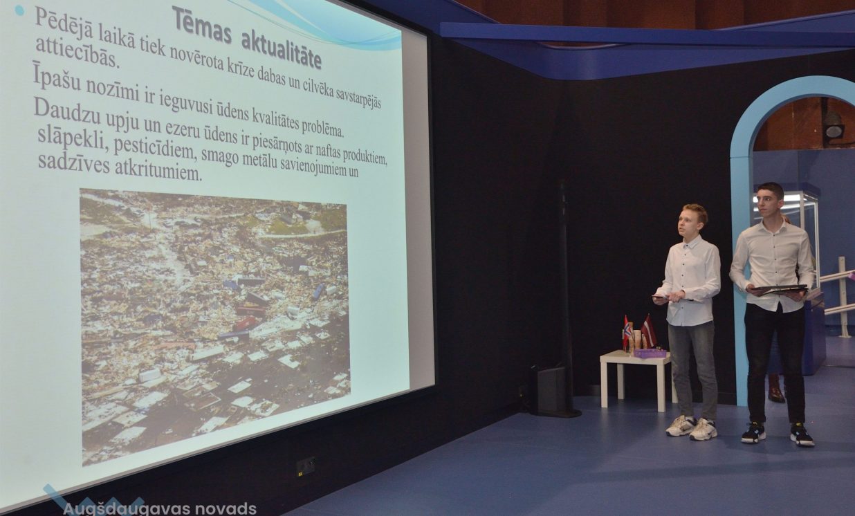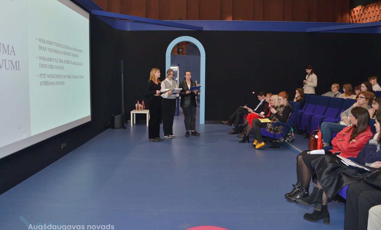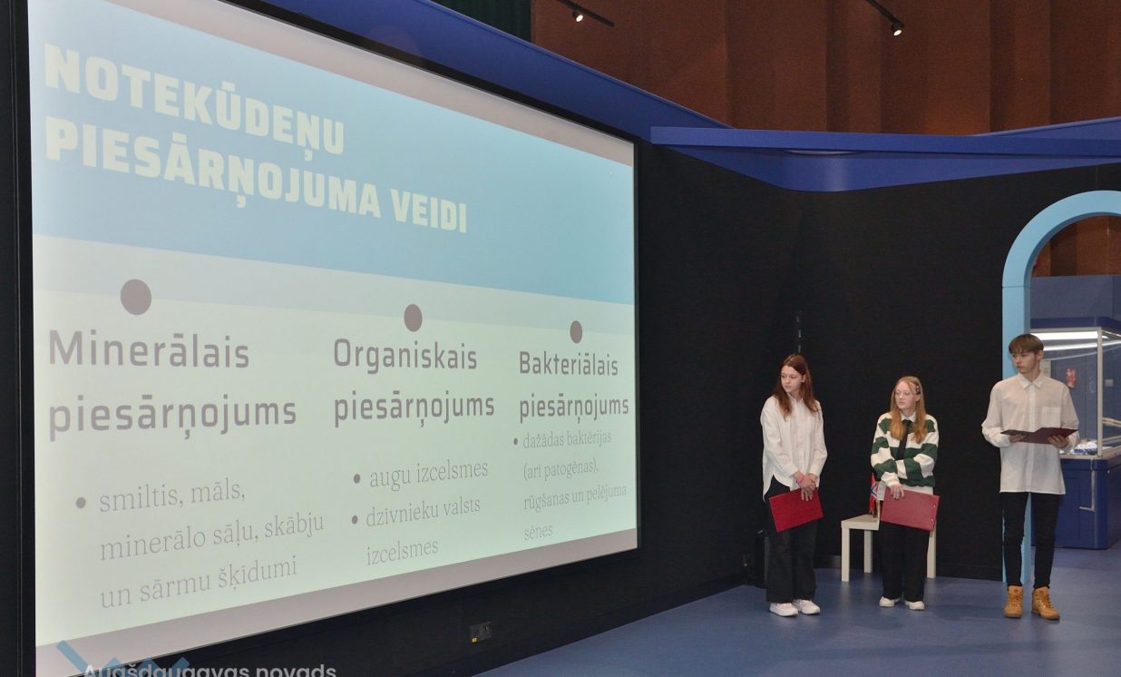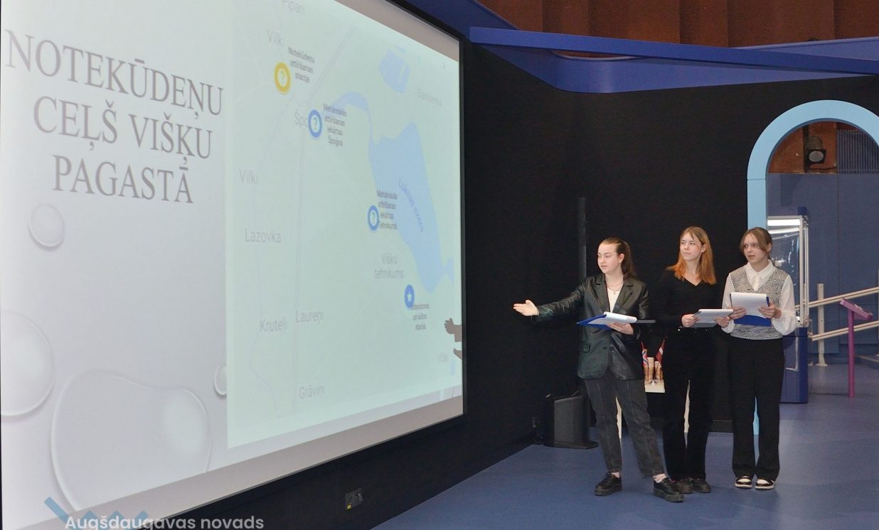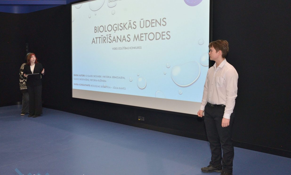 Ivars, Emīlija un Sofija no Daugavpils Valstspilsētas vidusskolas: “Mēs veicām projektu par notekūdeņu attīrīšanu. Mēģinājām noskaidrot, kas ir notekūdeņi, kas rada piesārņojumu, un piesārņojumu veidus.” Jaunieši devās uz ūdens attīrīšanas staciju Daugavpilī, kur vēroja, kā notiek bioloģiskā un mehāniskā attīrīšana.