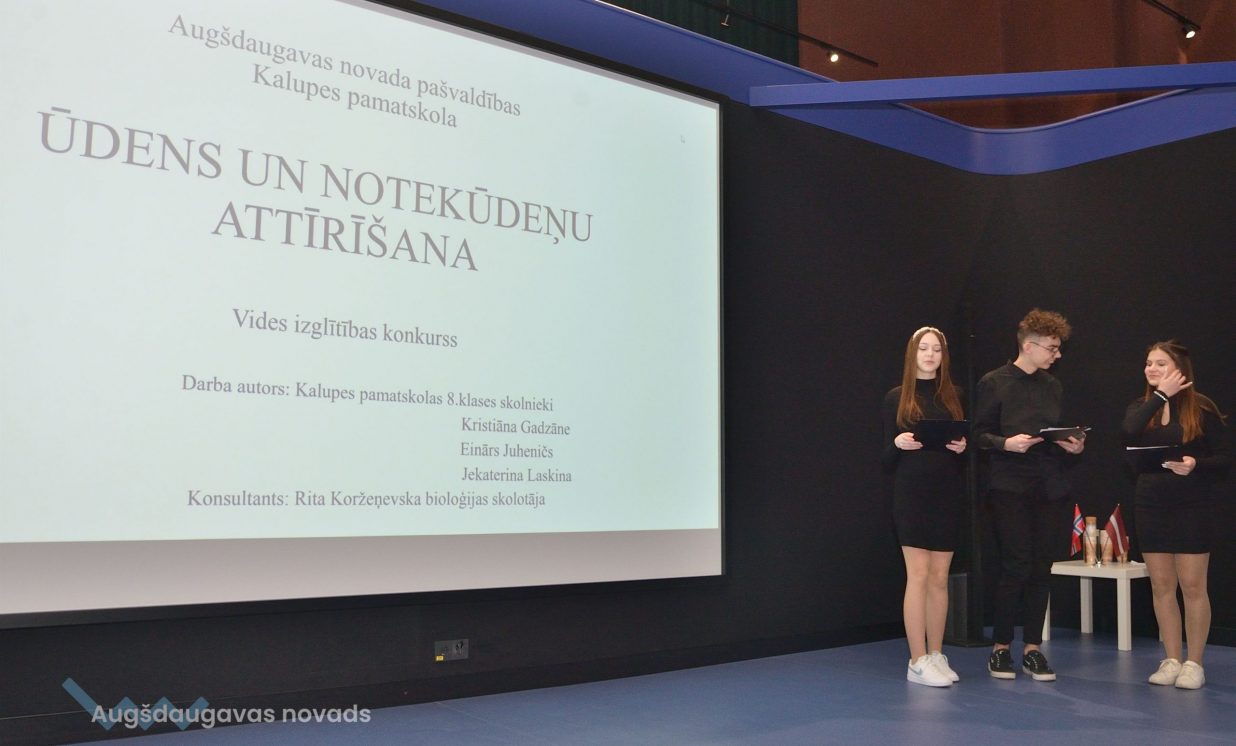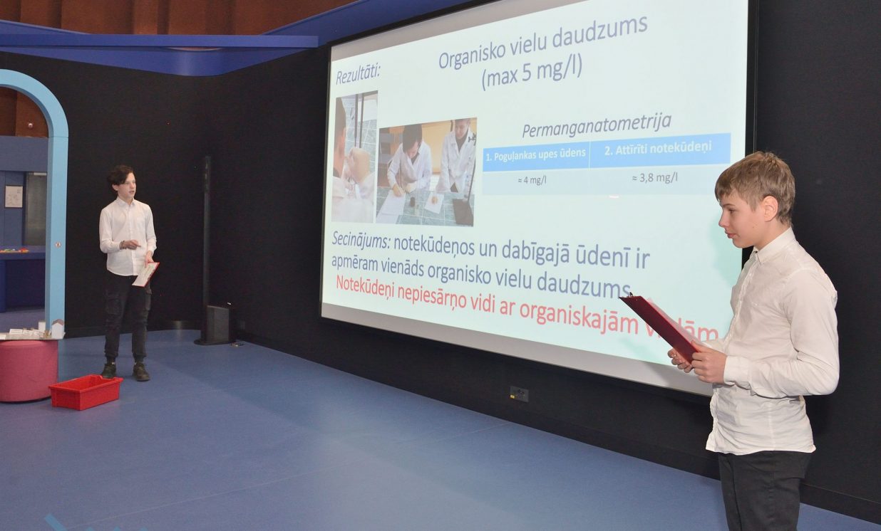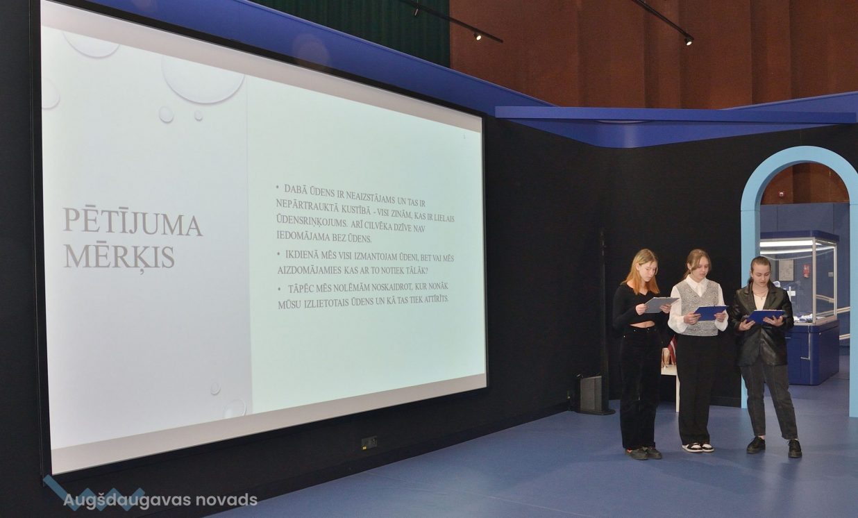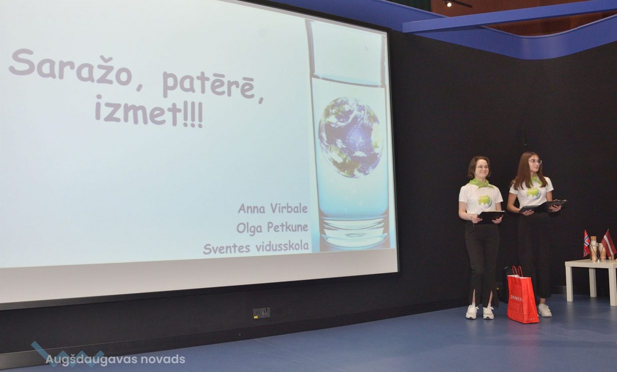 Ivars, Emīlija un Sofija no Daugavpils Valstspilsētas vidusskolas: “Mēs veicām projektu par notekūdeņu attīrīšanu. Mēģinājām noskaidrot, kas ir notekūdeņi, kas rada piesārņojumu, un piesārņojumu veidus.” Jaunieši devās uz ūdens attīrīšanas staciju Daugavpilī, kur vēroja, kā notiek bioloģiskā un mehāniskā attīrīšana.