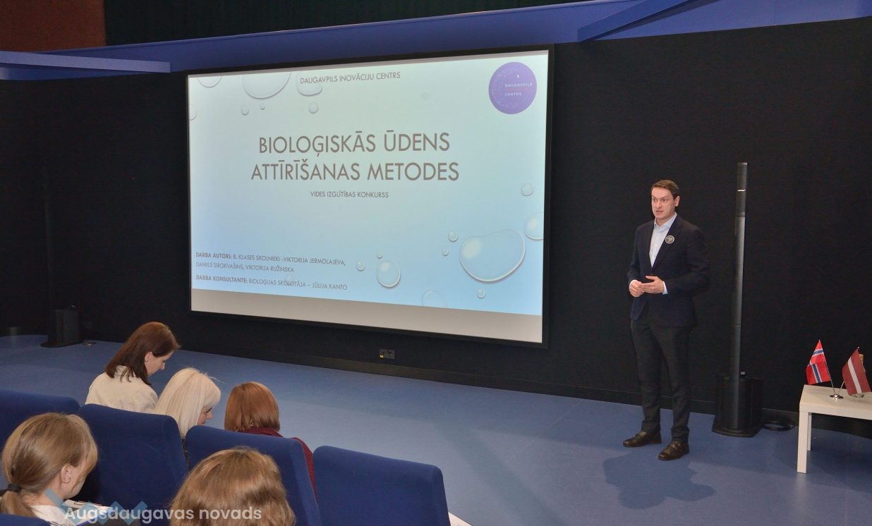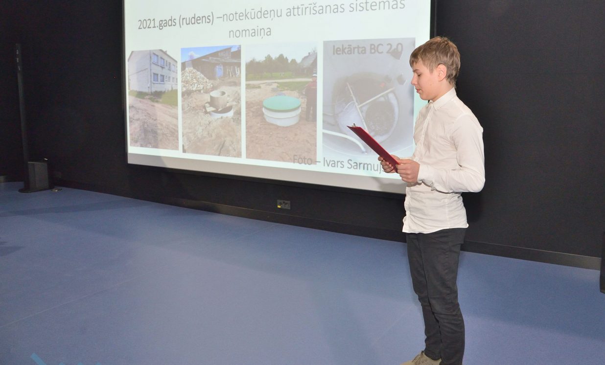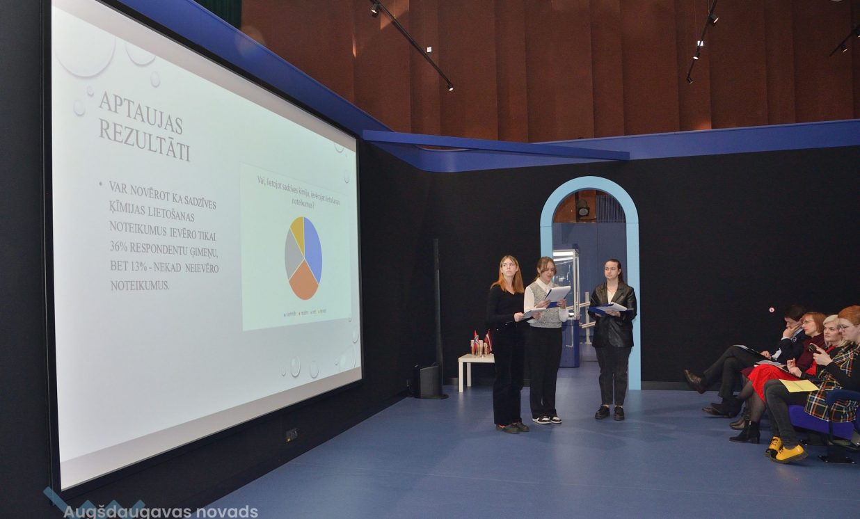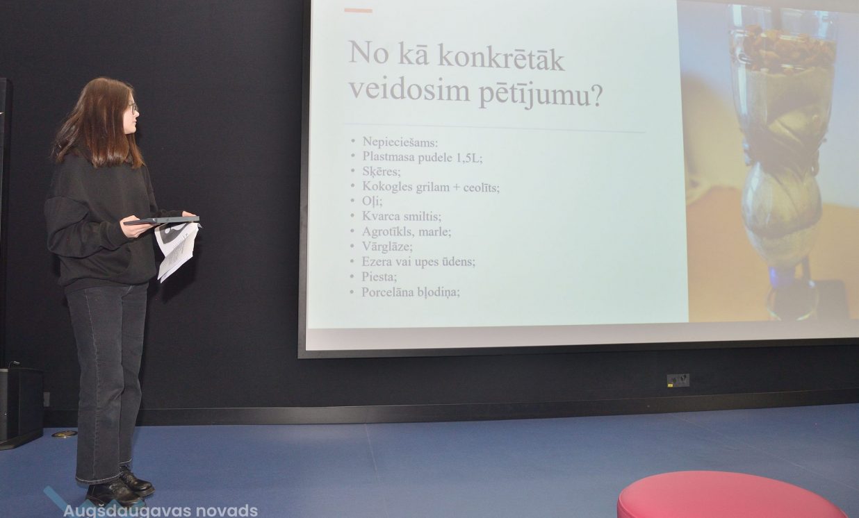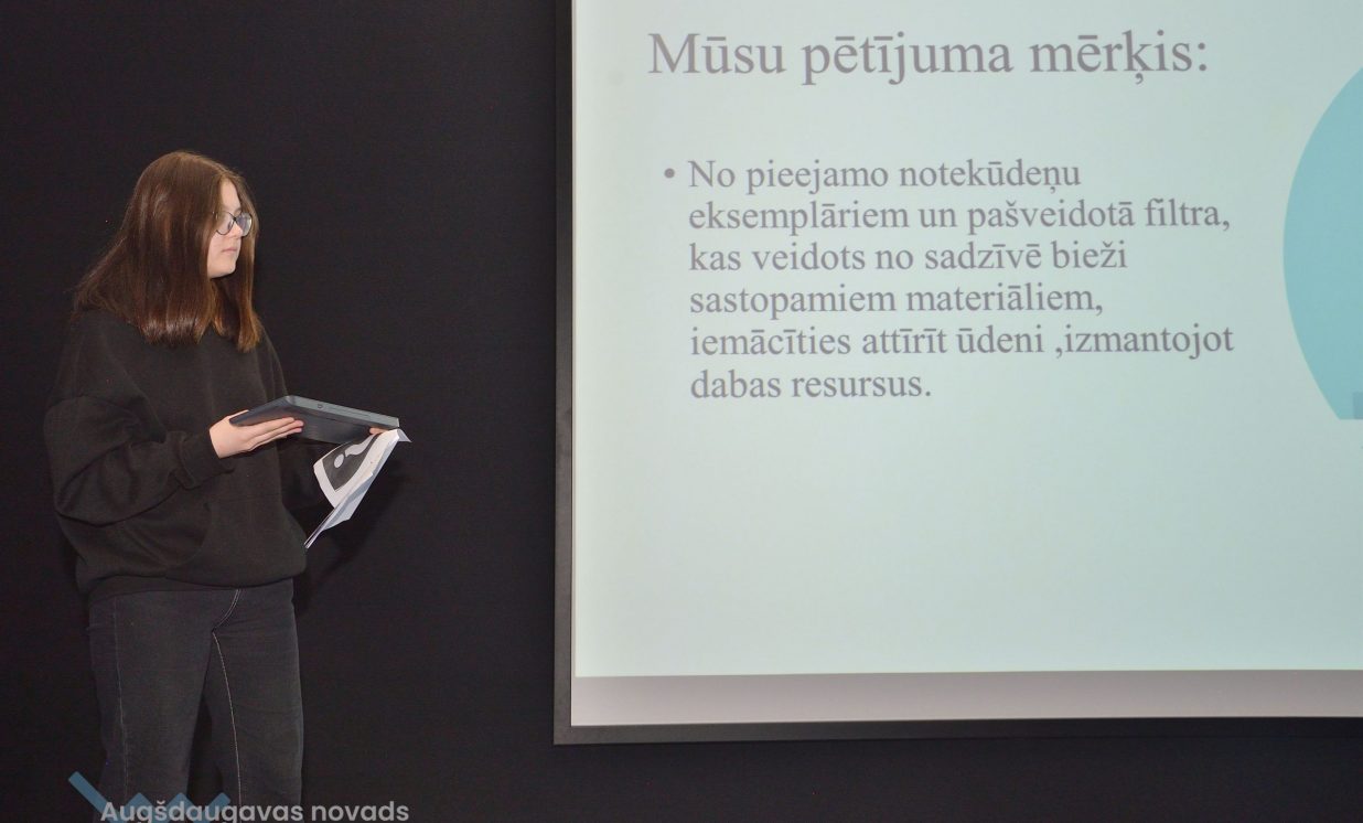 Ivars, Emīlija un Sofija no Daugavpils Valstspilsētas vidusskolas: “Mēs veicām projektu par notekūdeņu attīrīšanu. Mēģinājām noskaidrot, kas ir notekūdeņi, kas rada piesārņojumu, un piesārņojumu veidus.” Jaunieši devās uz ūdens attīrīšanas staciju Daugavpilī, kur vēroja, kā notiek bioloģiskā un mehāniskā attīrīšana.