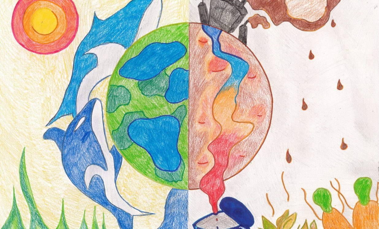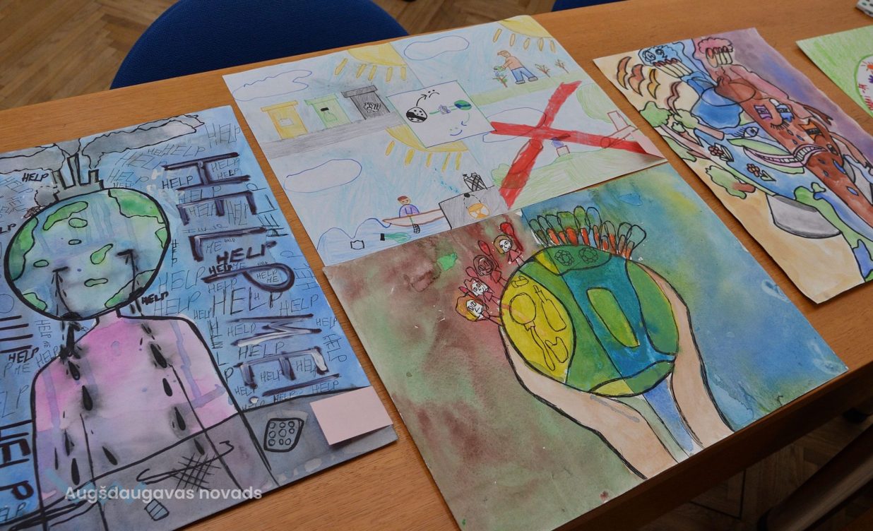 Bērni savos darbos radoši ataino klimata pārmaiņu tēmu