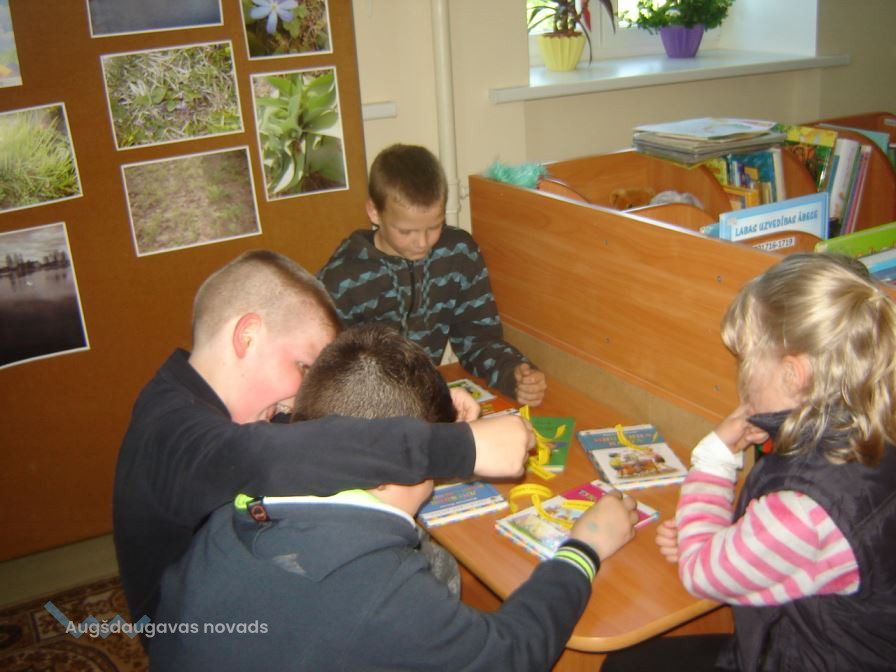 No sākuma bērni, sadaloties komandās “Ērgļi” un “Brīvdienas”, spēlēja spēli “Atrodi paslēpto mantu”. Atminot mīklu, bērni meklēja pagalmā paslēpto mantu. Pēdējā mīkla bija saistīta ar grāmatu plauktiem, bija jāatrod Nikolaja Nosova un Māra Runguļa grāmatas. Bērni ļoti ātri minēja mīklas, labi orientējās apkārtnē. Viņi uzzināja daudz jaunus grāmatu nosaukumus. Par katru pareizo atbildi komanda saņēma konfekti. Uzvarēja komanda “Brīvdienas”.
