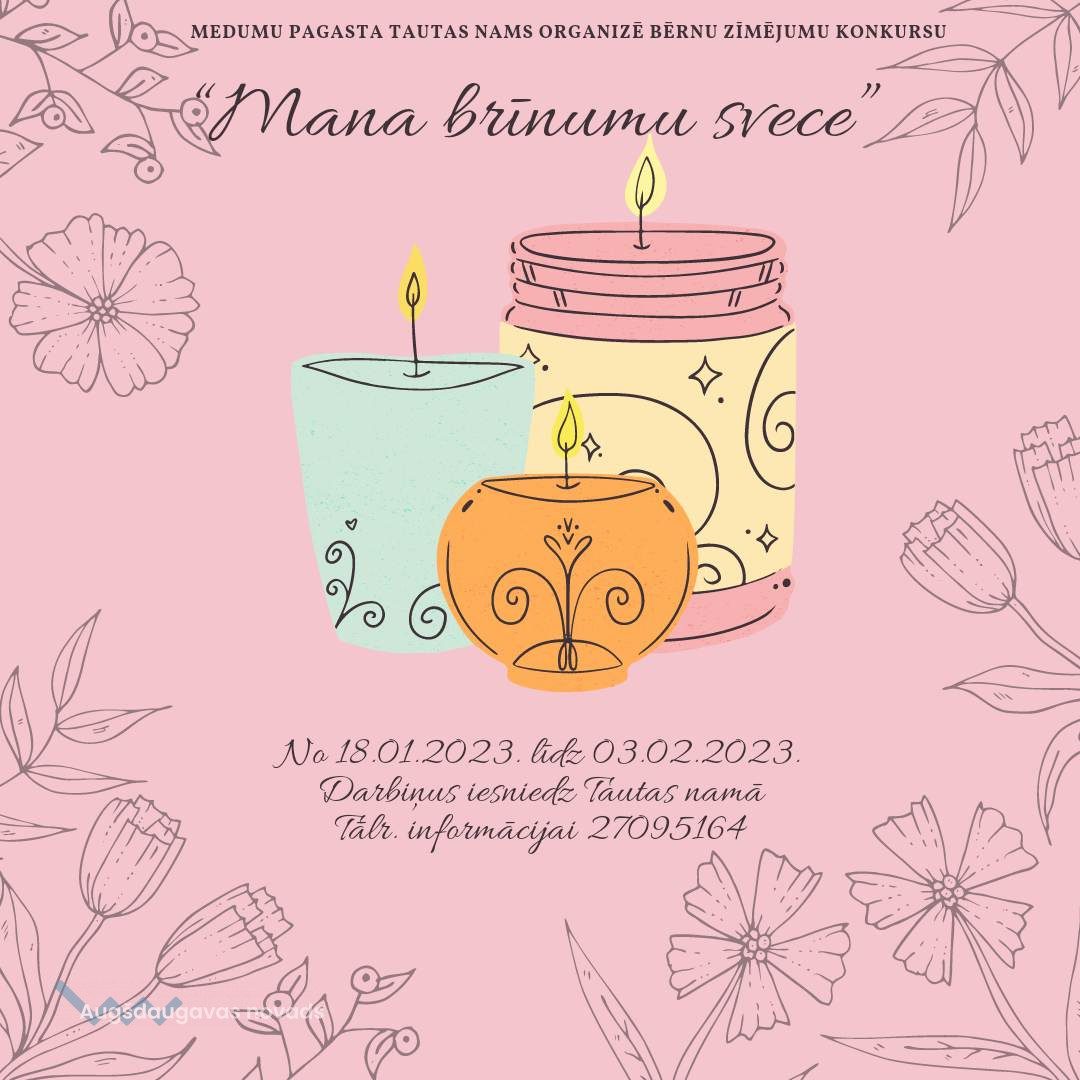 No 18. janvāra līdz 3. februārim Medumu Tautas nams organizē bērnu zīmējumu konkursu “Mana brīnumu svece!”.