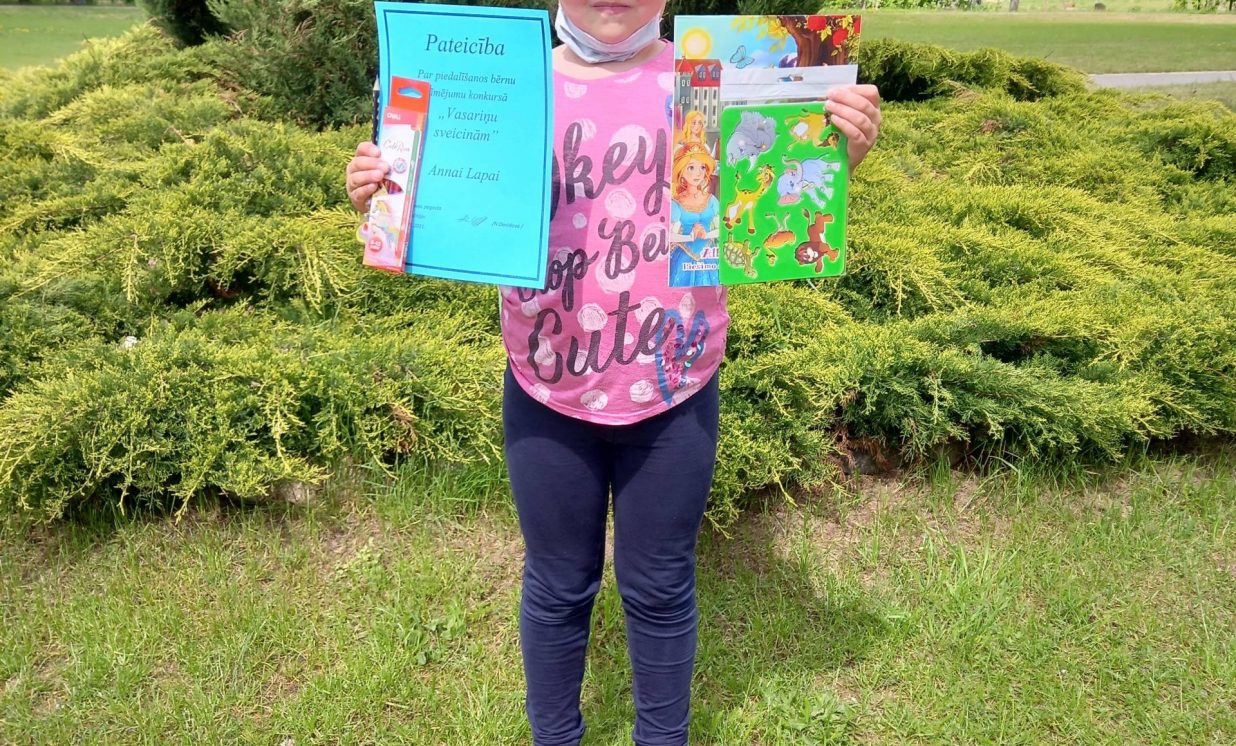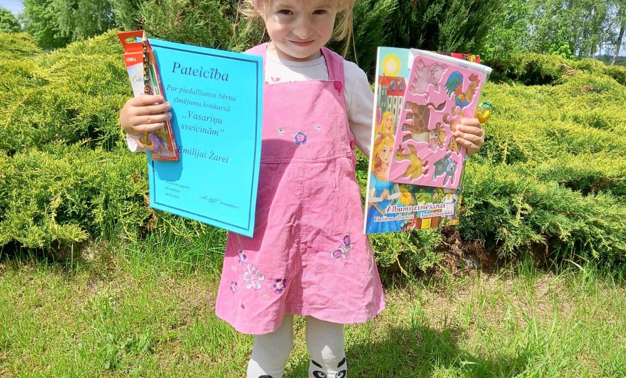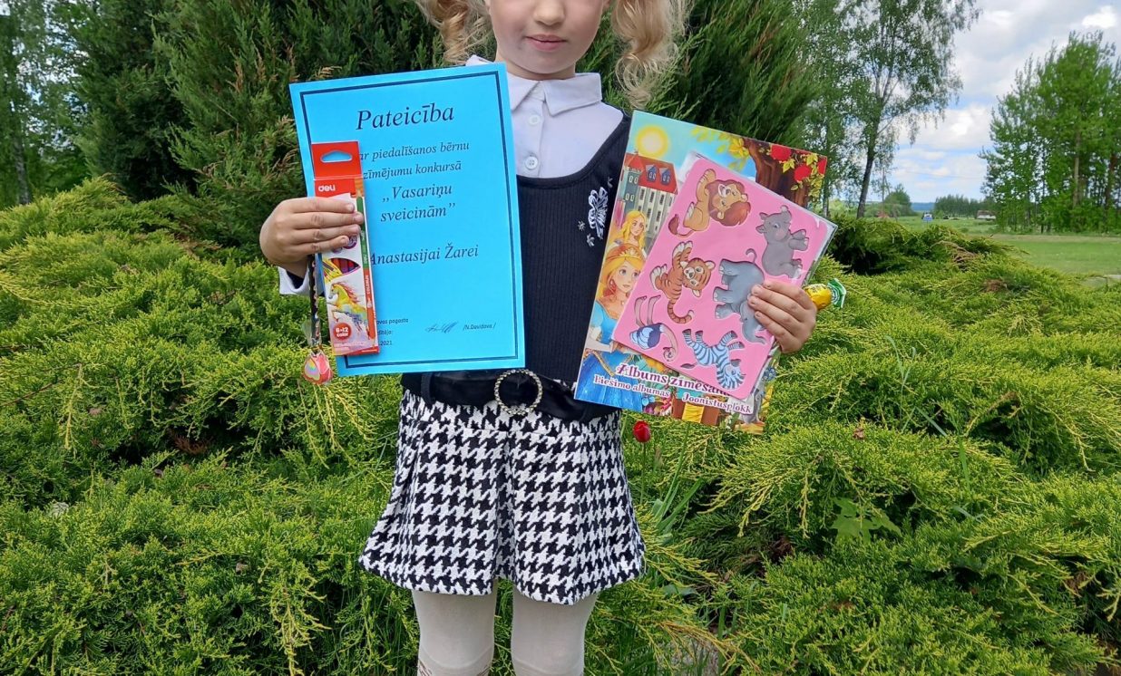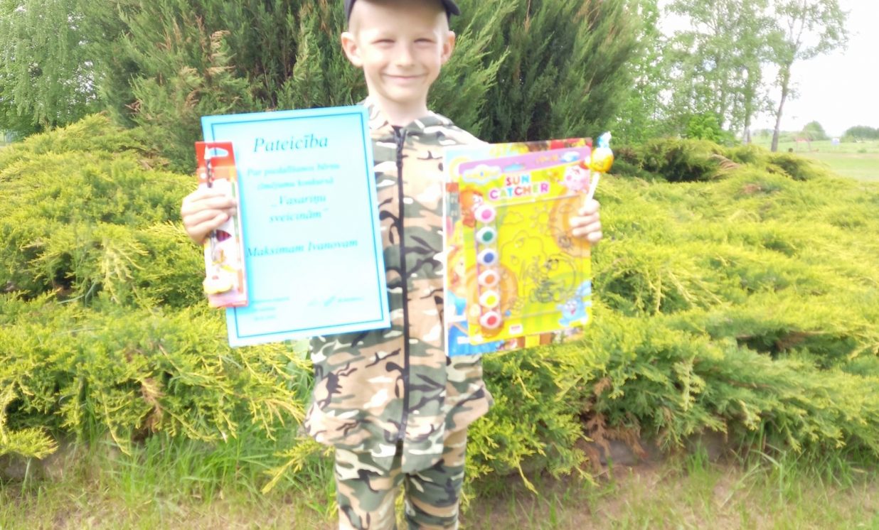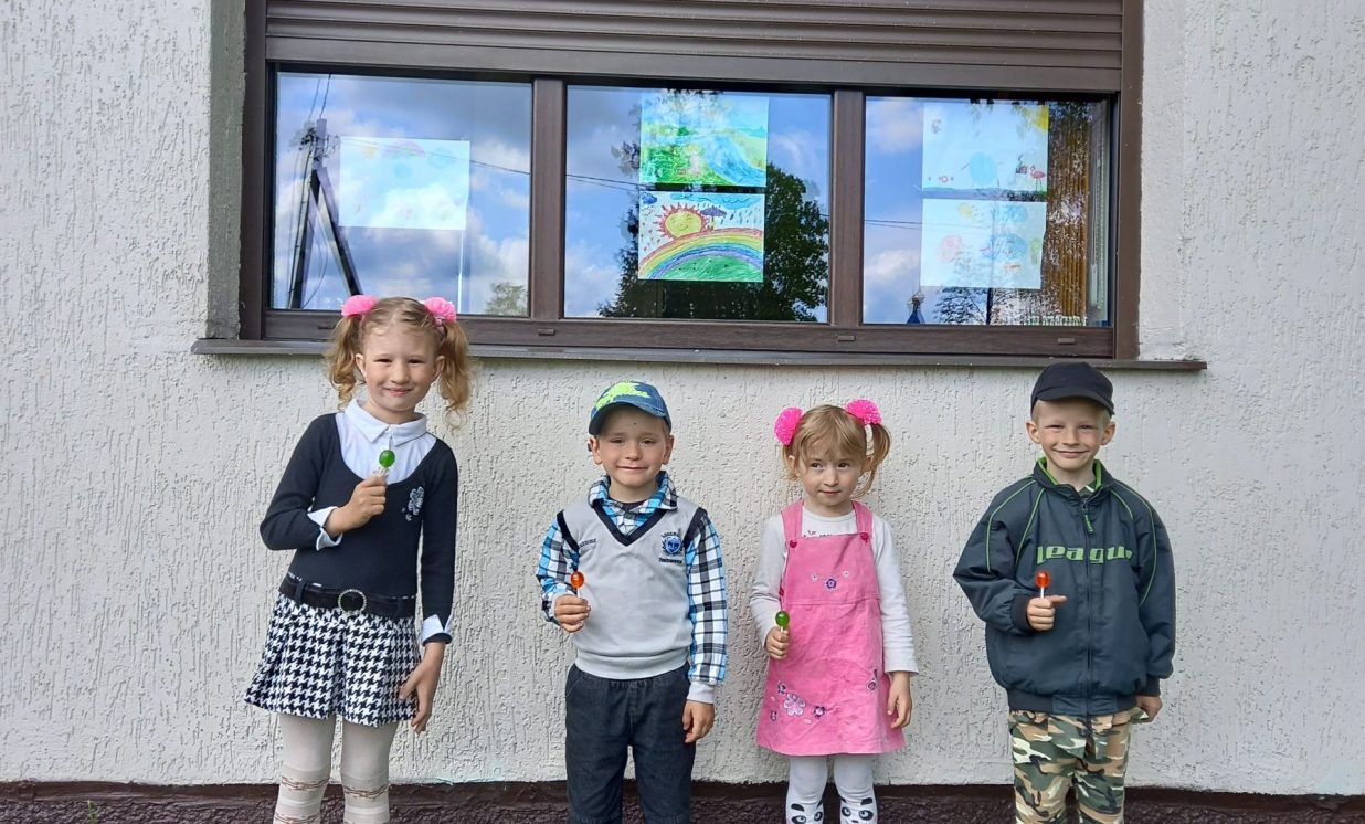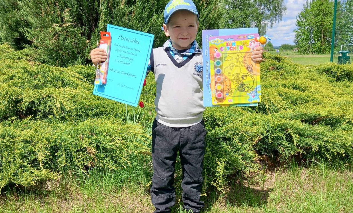 Visi dalībnieki saņēma pateicības un dāvanas. Katrs iedzīvotājs var aplūkot bērnu mākslas darbus izstādē Saieta nama logos.