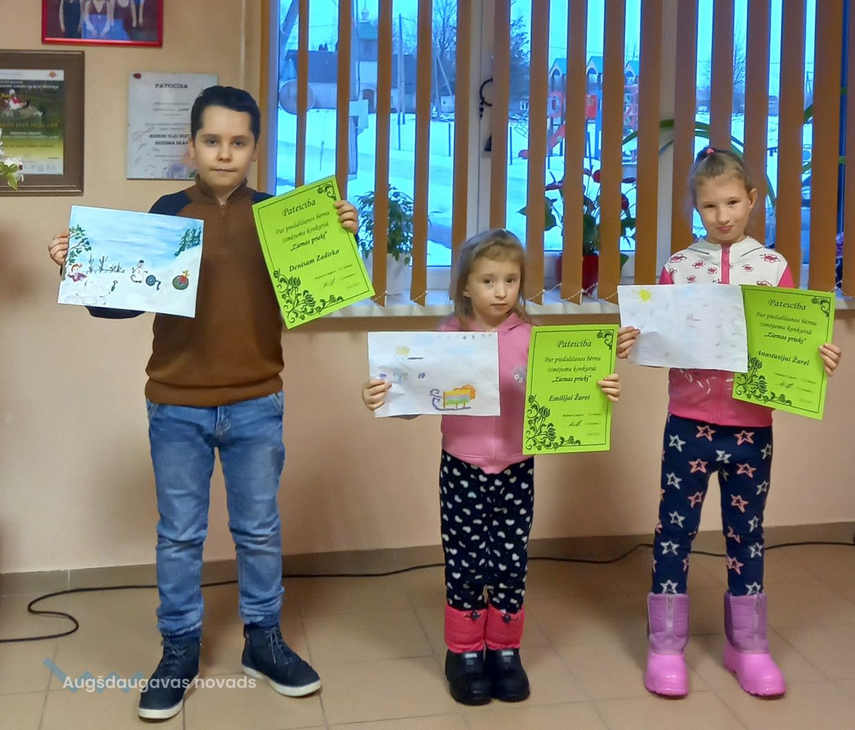 Konkursā savus darbiņus iesniedza bērni vecumā no 4 līdz 10 gadiem - Emilija Žare, Anastasija Žare, Deniss Zadirko un Vladislavs Terentjevs. Katrs uzzīmēja pa vienam zīmējumam. Zīmējumi tika sazīmēti ar krāsainiem zīmuļiem, flomasteriem, guašas un akvareļu krāsām.
