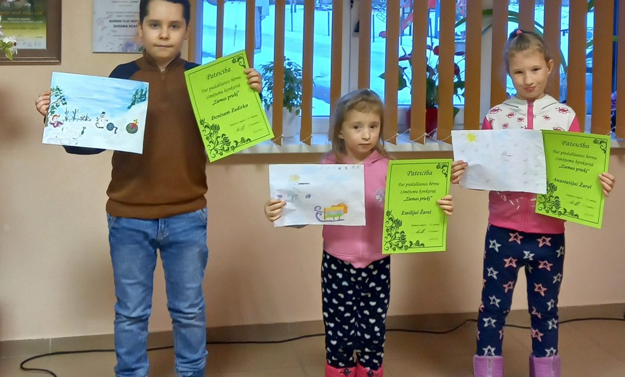 Visi dalībnieki saņēma pateicības un dāvanas. Katrs iedzīvotājs var aplūkot bērnu mākslas darbus izstādē Saieta nama logos no 10.02.2022. līdz 28.02.2022.
