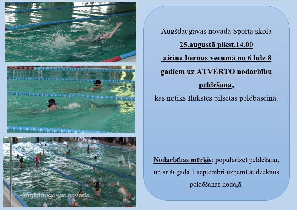 Bērnus aicina uz atvērto peldēšanas nodarbību