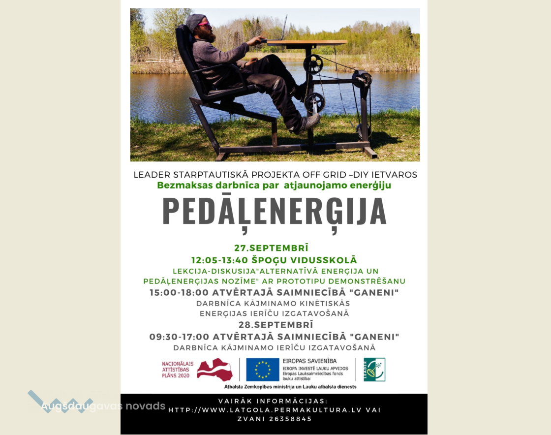 Vairāk informācijas par projekta norisi var iegūt mājas lapās: http://www.abulas.lv, http://lrpartneriba.lv/ un http://daugavpils.partneribas.lv/ , kā arī latgola.permakultura.lv . Projekts tiek īstenots no 2018.-2020.gadam un tiek finansēts Latvijas Lauku attīstības programmas 2014.-2020. gadam pasākuma “Starpteritoriālā un starpvalstu sadarbība” aktivitātes “Starpvalstu sadarbība” ietvaros. Projekta numurs un pilns nosaukums: Nr.18-00-A019.333-000010 “OFF-GRID: Renewable Energy DIY for rural development”.