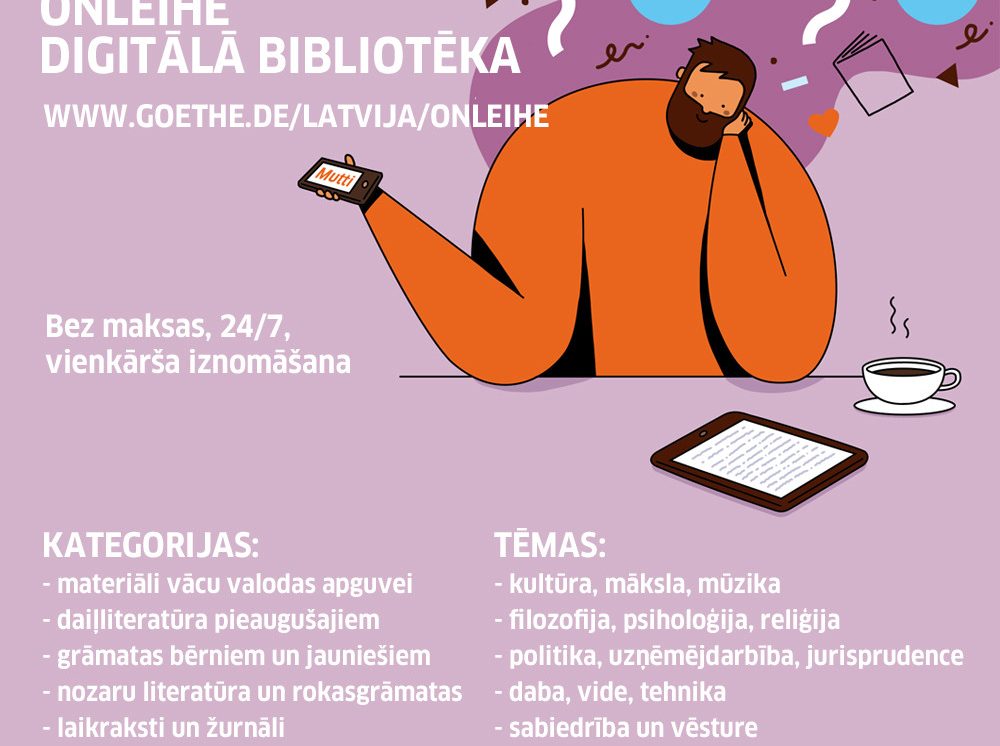 Detalizēta informācija par digitālo bibliotēku Onleihe pieejama saitē www.goethe.de/latvija/onleihe. Lapā atrodamas arī pamācības, kā ar dažādām ierīcēm (dators, iOS, Android) soli pa solim izmantot servisu.