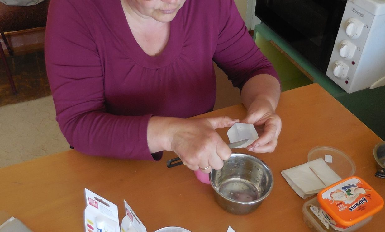 Biedrība “Dzidra straume” sadarbībā ar SIA “Jums S” organizēja darbu radošajās darbnīcās, kurās dalībnieki varēja iepazīt ziepju darināšanas noslēpumus. Pateicoties atbalstītāja palīdzībai tika iegādāti nepieciešamie materiāli darbam - aromatizētāji, krāsvielas, trauki, ziepju bāze, barojošas eļļas un oriģinālas formiņas. Ziepju vārīšanas interesenti nepalika bez aromātiska, skaista un praktiska suvenīra. Krāsains ziepju gabaliņš, piepildīts ar barojošām eļļām un papildināts ar saldo vaniļu vai aromātisko meloni, pacels lietotājam garastāvokli un noderēs ikdienā.