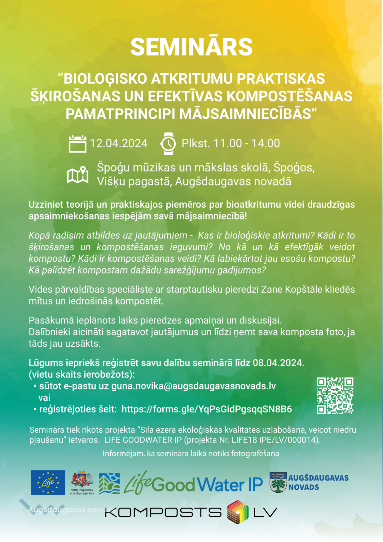 Joprojām var pieteikties bioloģisko atkritumu tēmai veltītam semināram Špoģos08.04.2024AKTUĀLI Dalībnieku reģistrācija tiešsaistē