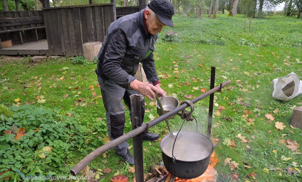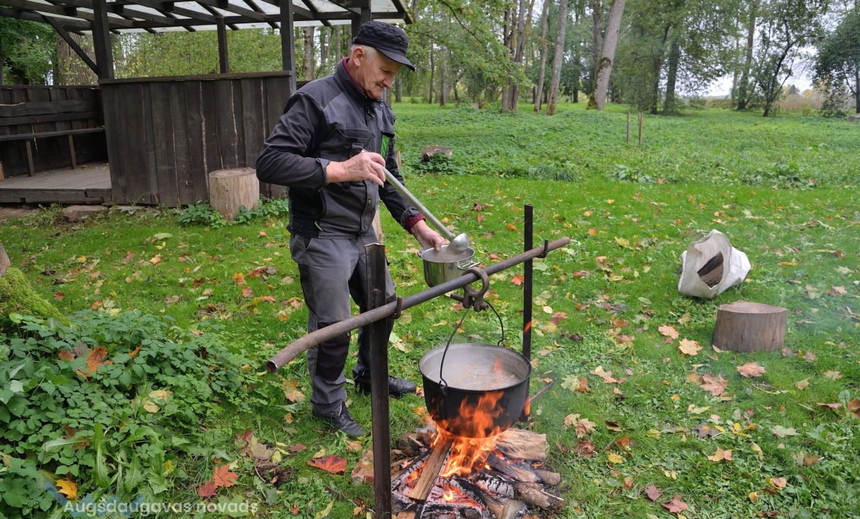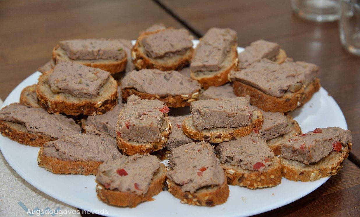 Šajā kulinārajā meistarklasē varēja nobaudīt dažādus gardus ēdienus, tostarp skābētus ābolus un muzeja saimnieces Annas Lazdānes gatavotās plātsmaizes un uzkodas.