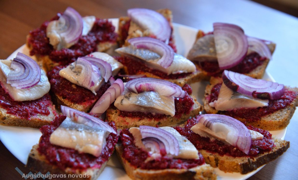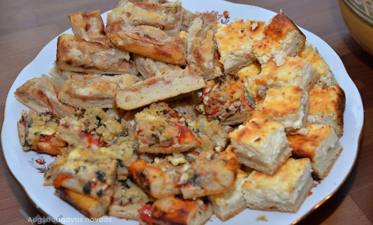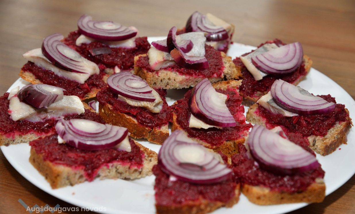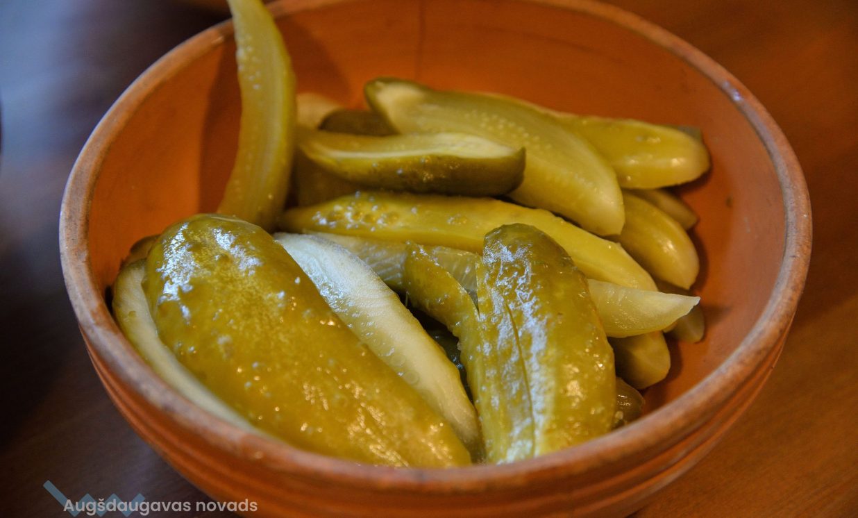 Šajā kulinārajā meistarklasē varēja nobaudīt dažādus gardus ēdienus, tostarp skābētus ābolus un muzeja saimnieces Annas Lazdānes gatavotās plātsmaizes un uzkodas.