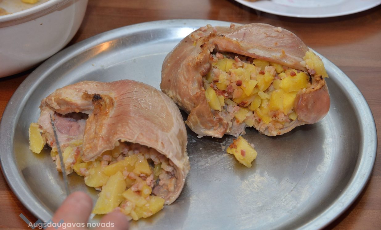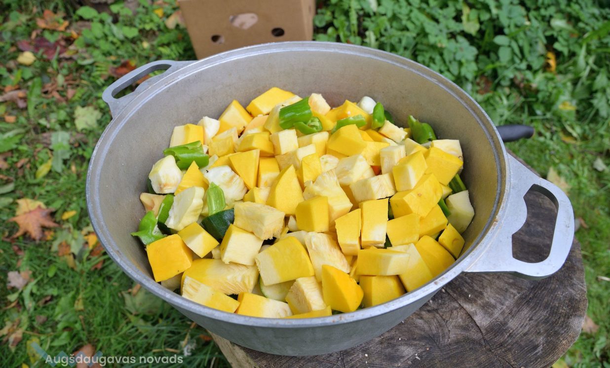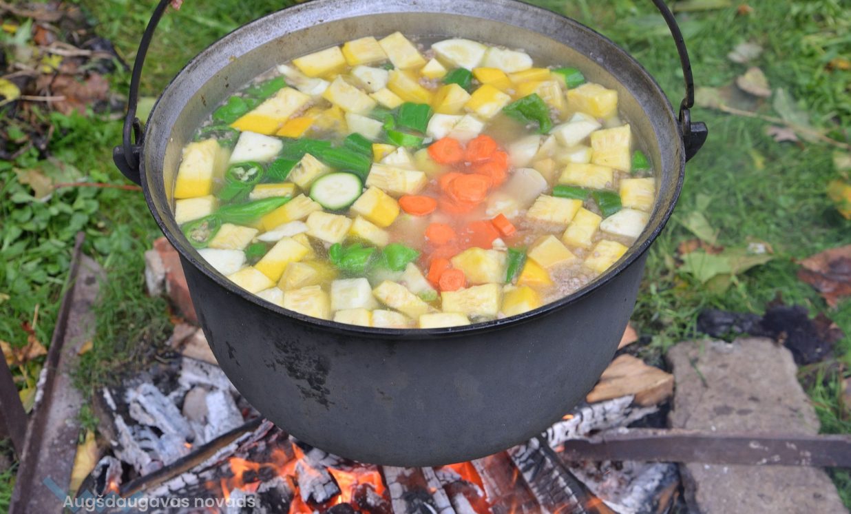 Muzeja pagalmā lielā katlā uz uguns tapa īpašs rudens sautējums, kas tiek gatavots no visa dārzā izaudzētā. Tikmēr Jolanta gatavoja īpašu cūku bēru ēdienu – ar dārzeņiem pildītu cūkas kuņģi. Viņa pamāca, ka kuņģis pirms gatavošanas kārtīgi jāiztīra un jāizberžar sāli, varot izmērcēt sāls vai sodas šķīdumā. Iekšā pilda visu, ko sirds kārojas, bet Jolanta kuņģi pilda kartupeļiem, sīpoliem un pīrādziņu speķi. Sapildītos kuņģus liek uz cepešplāts un cep krāsnī gatavus.