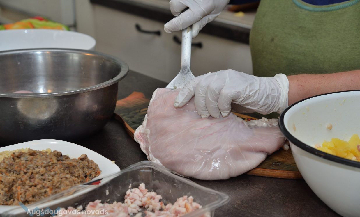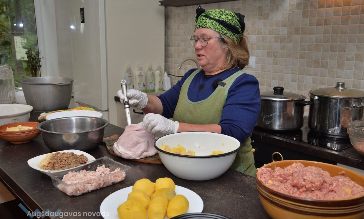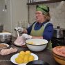 Viena no šādām meistardarbnīcām notika Skrindu dzimtas muzeja kulinārā mantojuma telpās, kur Kalkūnes pagasta saimniece Jolanta Bāra gatavoja dažādus gardus ēdienus, kas senāk pasniegti cūku bērēs.