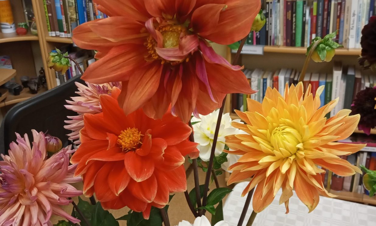 Es pateicos tev, mīļā, labā skola, Par rīta sauli, ko mums liki plaukstās: Mēs paņemam no tavas klases sola Sev līdz ar sauli sapņu zvaigznes augstās. (J.Osmanis) No 31.augusta Maļinovas pagasta bibliotēkā ir skatāma krāšņāko rudens ziedu – dāliju izstāde, kas veltīta pirmajai skolas dienai, skolotājiem un skolēniem. Lai veiksmīgs jaunais mācību gads, pilns radošuma, labām sekmēm, zinātkāriem skolēniem. Izstāde tapa pateicoties bibliotēkas lietotāju atsauksmei, sarūpēti 26 dažādu šķirņu dāliju ziedi, iespējams nofotogrāfēties starp dālijām. Paldies par skaistajām dālijām Natālijai Ančevskai, Ilonai Jefimovai, Žannai Sidorovai. Maļinovas pagasta bibliotēkas vadītāja Elvīra Kokina
