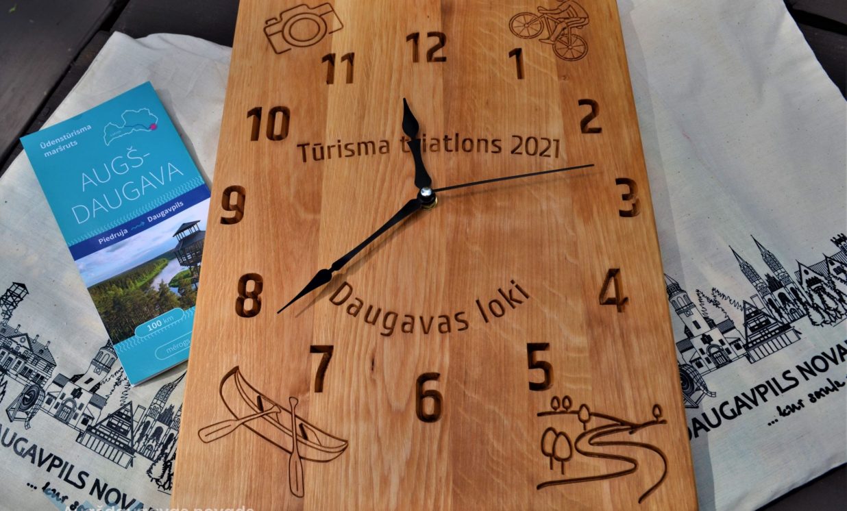 Priecēja saulainais laiks, un, neskatoties uz stipru pretvēju, laivojot pa Daugavu ar kajaku, visi dalībnieki lieliski tika galā ar uzdevumiem, un visi piedzīvojuma posmi tika veiksmīgi pārvarēti. Kopumā sešām komandām izdevās atrast un piefiksēt visus 12 kontrolpunktus, tāpēc no šīm komandām izlozes veidā par uzvarētāju tika pasludināta komanda “Ohaio”, kurā startēja Kristiāna Siliņa un Zanda Lisovska. Vēlreiz sirsnīgi sveicam meitenes ar godam nopelnītu uzvaru! Dalībnieces saņēma īpašu piemiņas balvu – stilizētu koka pulksteni, kuru izgatavoja darbnīca “Urtawood” Pilskalnes pagastā. Darbnīcas īpašnieki arī veiksmīgi piedalās tūrisma apritē, ir izveidojuši savu darinājumu veikalu, kā arī piedāvā personalizētu koka priekšmetu izgatavošanas meistarklases, koku atpazīšanas viktorīnas un ekskursijas pa darbnīcu.
