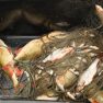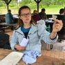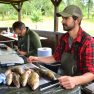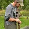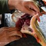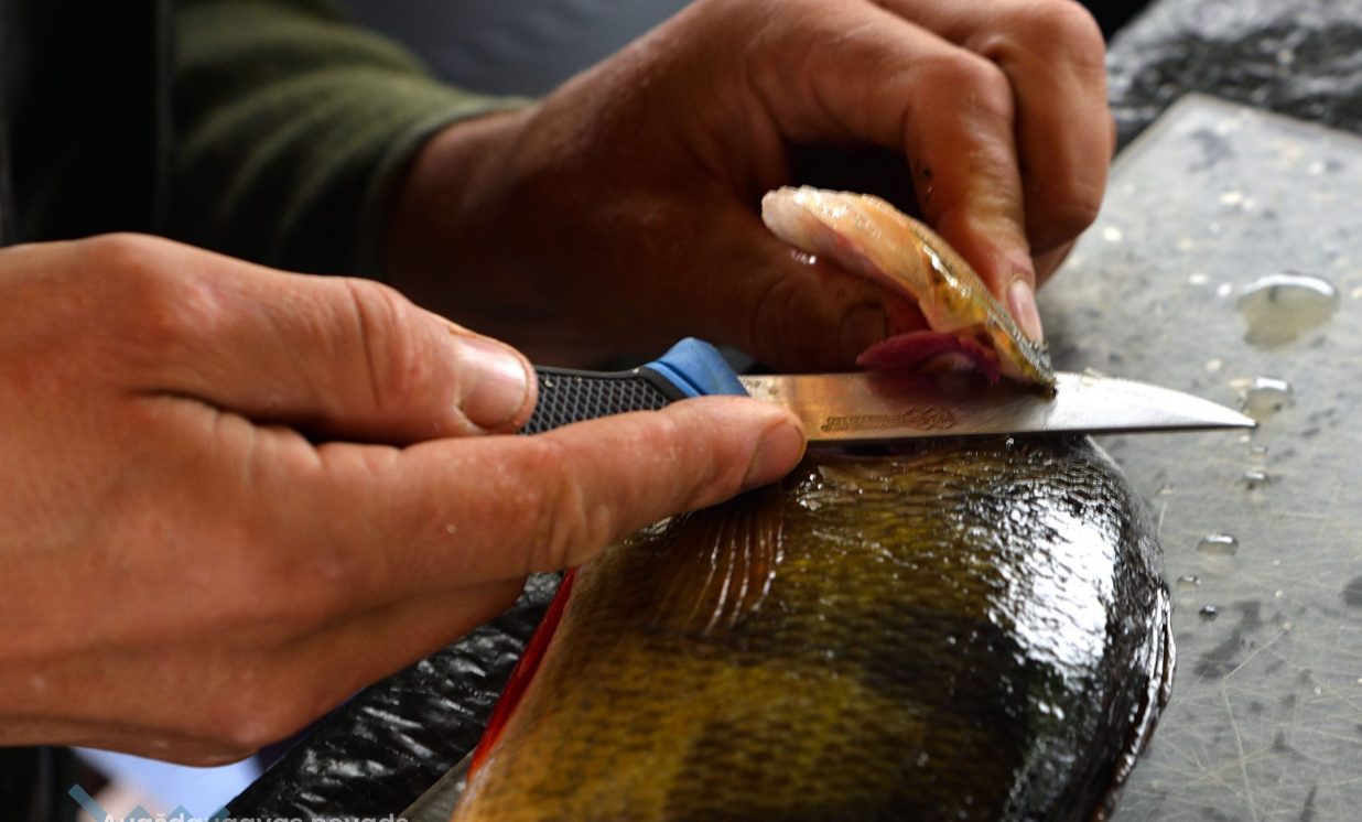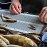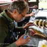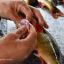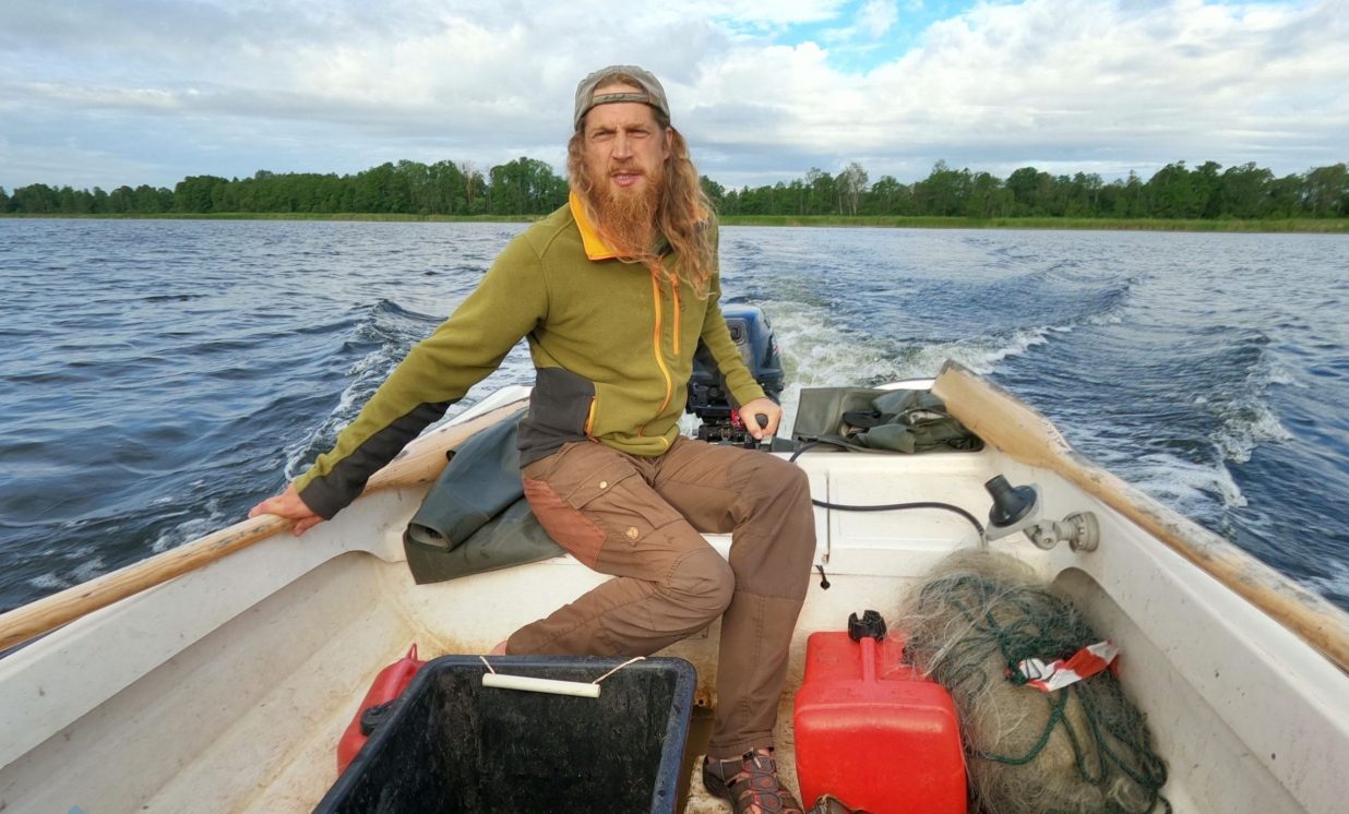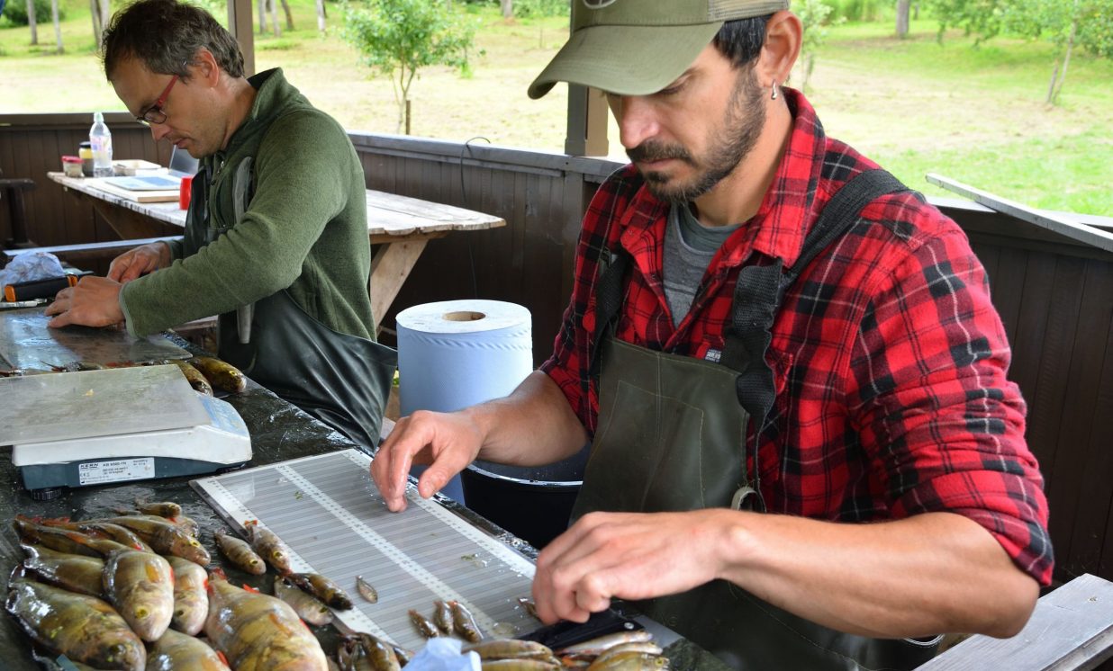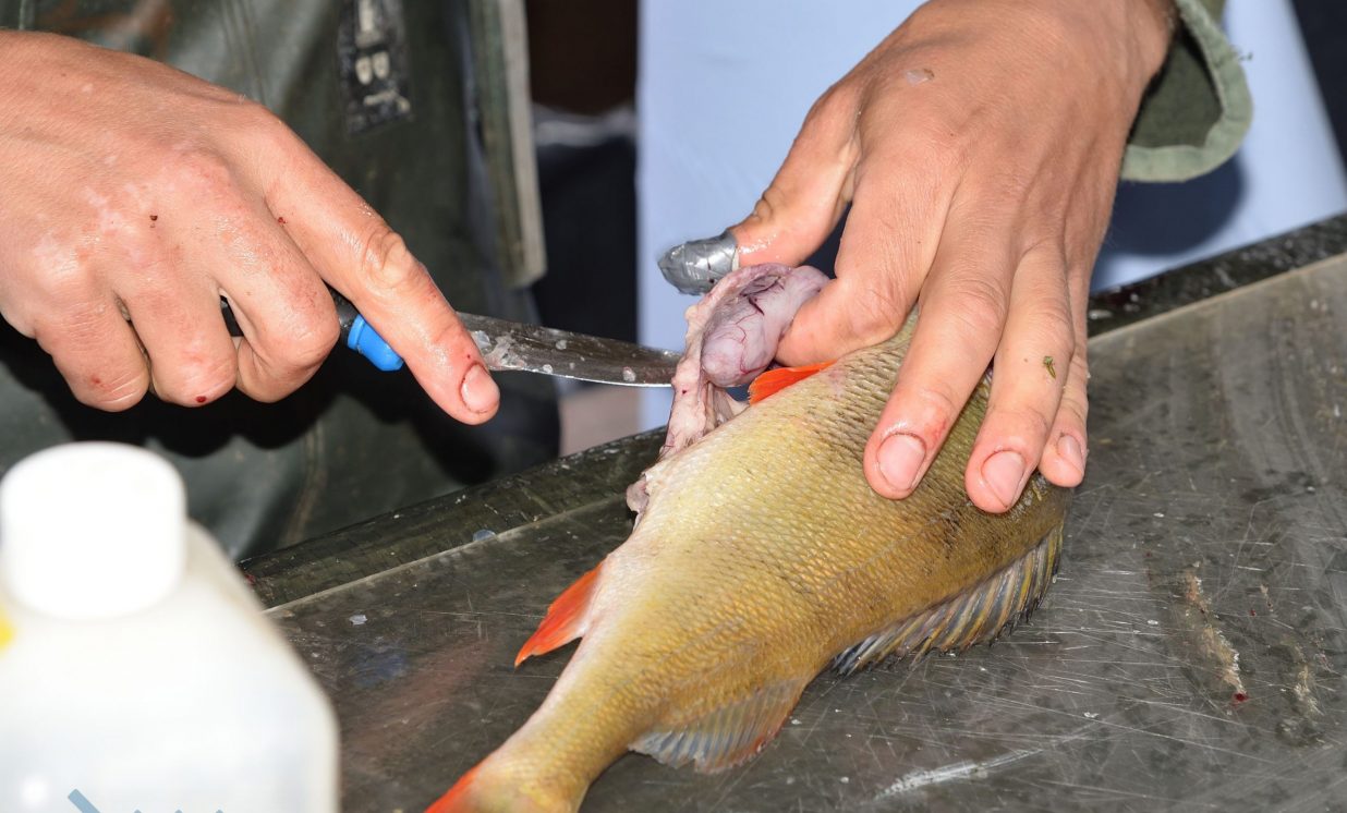 Matīss Žagars preparē zivi, iegūstot pētniecībai nepieciešamos datus
