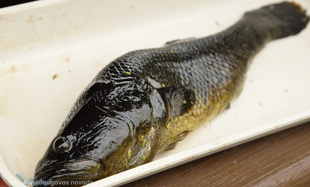 Valērijs Ašķeļaņecs demonstrē vienu no lielākajiem noķertajiem eksemplāriem