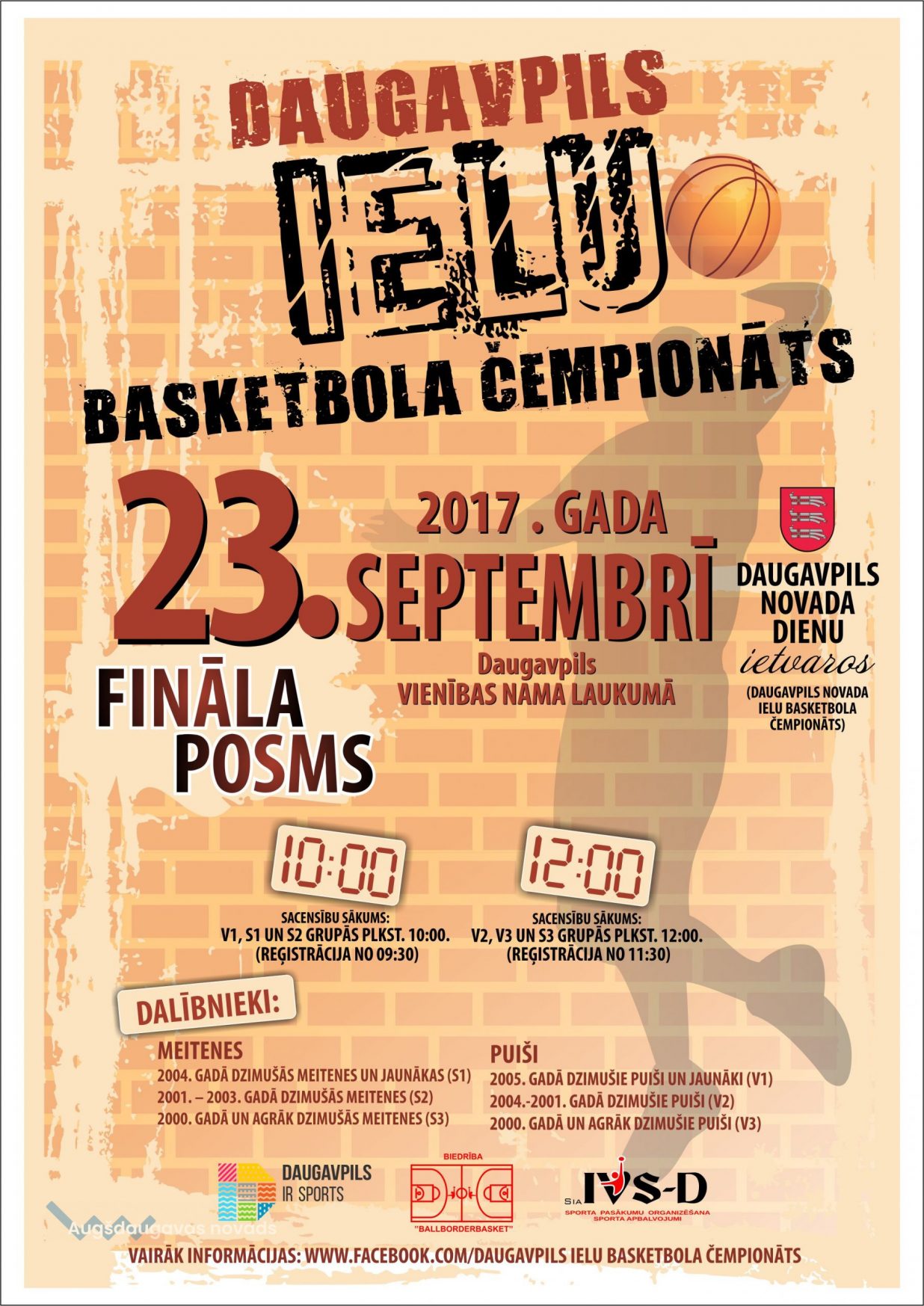 Daugavpils novada ielu basketbola čempionāts12.09.2017AKTUĀLI 23. septembrī Daugavpils Vienības laukumā Daugavpils novada dienu ietvaros notiks Daugavpils ielu basketbola čempionāts un Daugavpils novada ielu basketbola čempionāts.Vairāk informācijas - https://www.facebook.com/Daugavpils-ielu-basketbola-čempionāts-767169676736534/