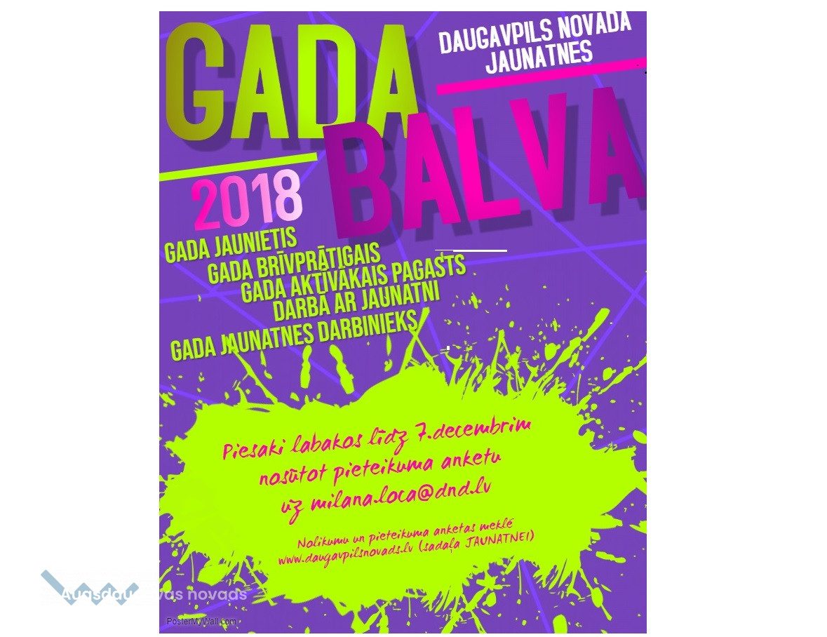 Daugavpils novada jaunatne izsludina nominantu pieteikšanu Daugavpils novada jaunatnes gada noslēguma pasākumam, kas tradicionāli norisināsies jau trešo reizi.