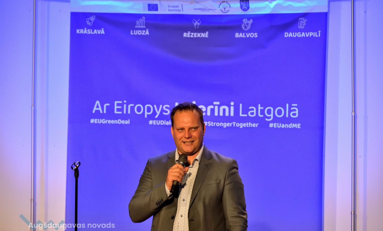Klātesošos sveica “Dienvidlatgales NVO atbalsta centra” koordinators Oskars Zuģickis, Eiropas Komisijas pārstāvniecības vadītāja Latvijā p. i. Andris Kužnieks, kā arī izglītības un zinātnes ministre Ilga Šuplinska.