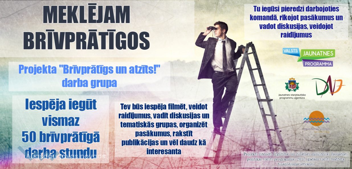 Ir atbalstīts Daugavpils novada domes Izglītības pārvaldes iesniegtais projekts “Brīvprātīgs atzīts” atklātajam projektu konkursam “Atbalsts jaunatnes politikas īstenošanai vietējā līmenī”. Kopš 2016.gada 1.janvāra Latvijā darbojas Brīvprātīgā darba likums, uz kura pamata tika izstrādāti Noteikumi par jauniešu brīvprātīgā darba organizēšanu Daugavpils novadā. Šobrīd Daugavpils novadā darbojas ap 60 brīvprātīgo gan savos pagastos, gan novada mērogā.