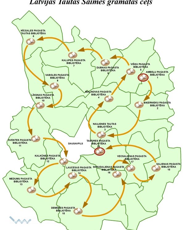 Sākot ar janvāri grāmata ceļos pa visiem Daugavpils novada pagastiem. Centrālā grāmatas atrašanās vieta būs pagastu bibliotēkās. Ir uzrunāti jau vairāk kā 50 novadnieki, kas atstās savus ierakstus Saimes grāmatas lappusēs. 13. janvārī grāmata tiks iedziedāta Ambeļu skreinē.