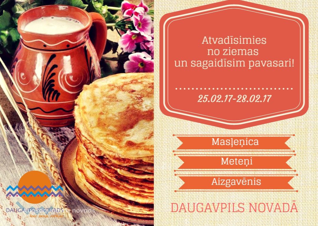 Apnicis ziemas aukstums, ledus, sniegs? Tad sanāciet, sanāciet kopā un ātrāk aizdzeniet ziemu, paveriet ceļu pavasarim un siltai saulītei, piedaloties jautrajos pasākumos Daugavpils novadā – te pavasara gaidīšanas svētkus sauc gan par Meteņiem, gan Masļeņicu, gan Aizgavēni. Viesus gaida muzikālie priekšnesumi, tradicionālā salmu lelles dedzināšana, rotaļas, sportiskas aktivitātes un, protams, cienasts – siltas pankūkas, apaļas kā saule!