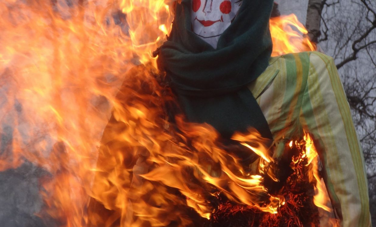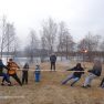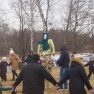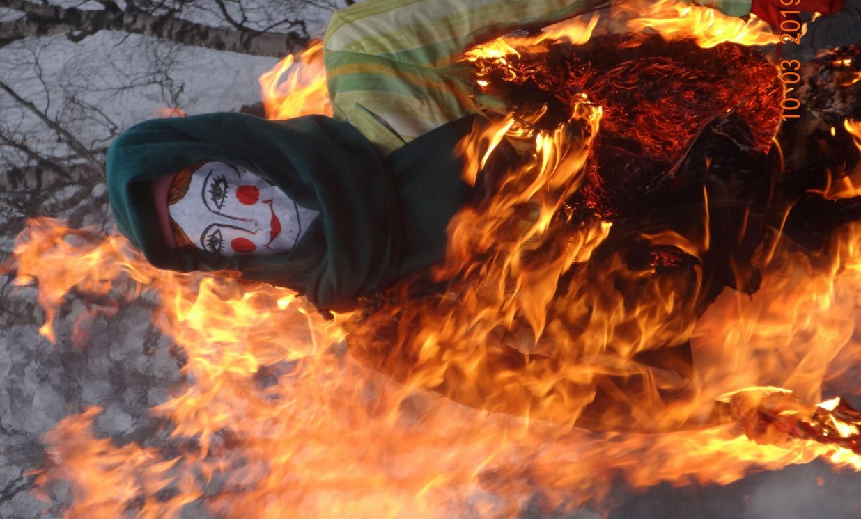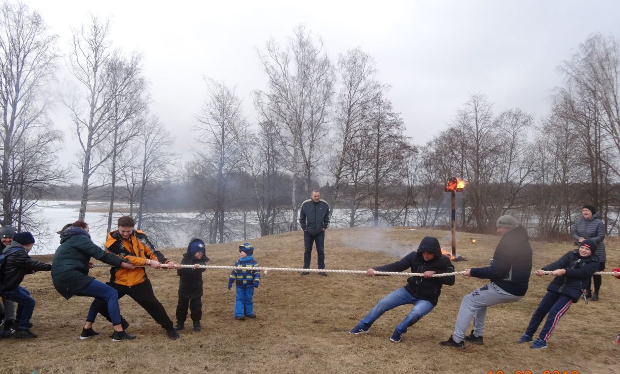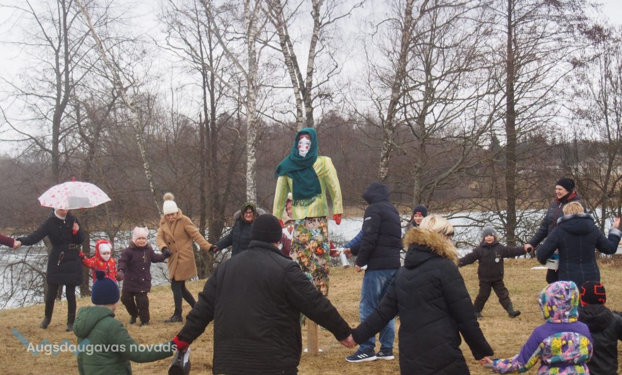 Pēc tam aktivitātes notika svaigā gaisā, kur bija iespēja spēlēt, zīmēt, sastādīt mozaīku un, protams, cienāties ar gardām pankūkām un karstu tēju. Noslēgumā visi sapulcējās ap salmu lelli, lai kopā nolūkotos, kā sadeg bēdas un skumjas, ar cerību, ka drīz jau atnāks pavasaris.
