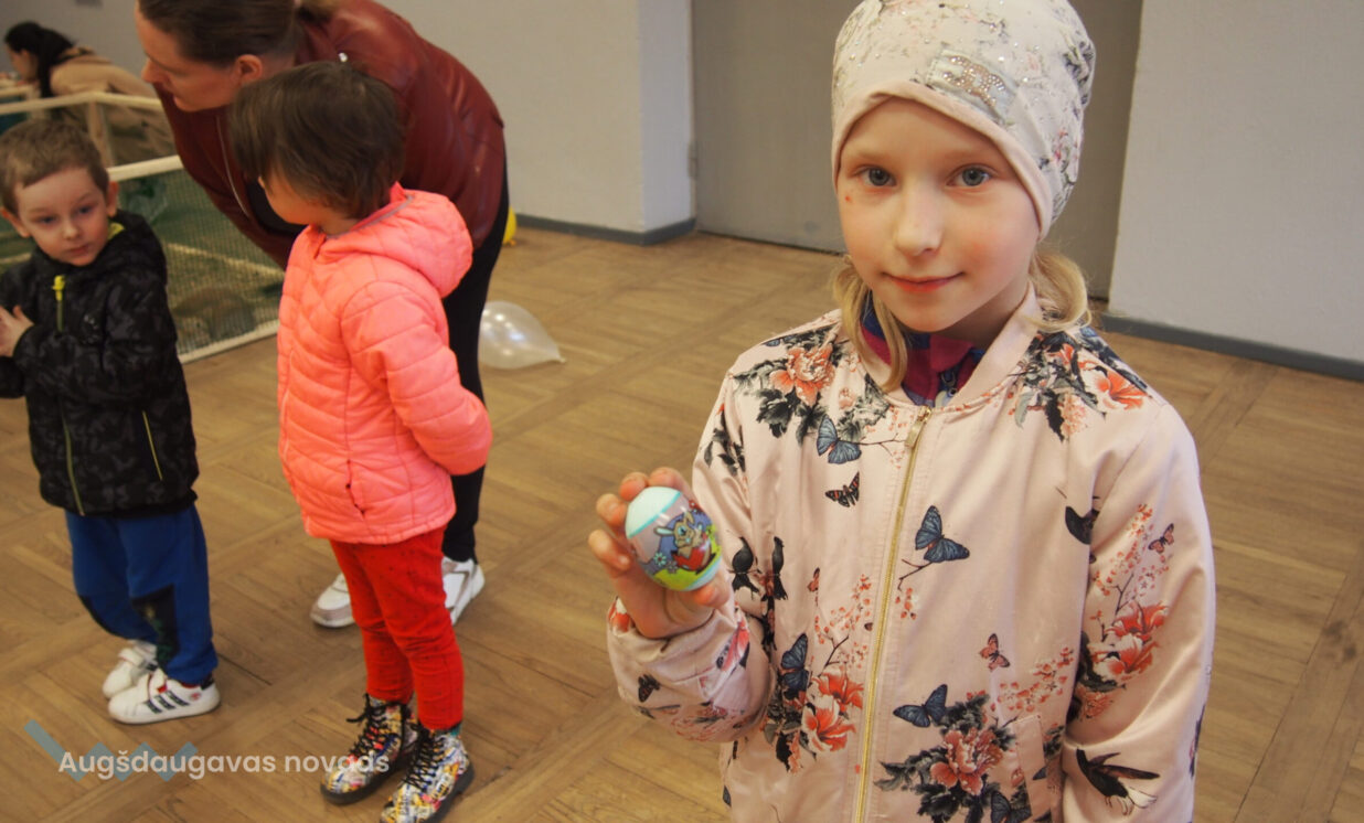 Bērni un pieaugušie aktīvi piedalījās krāsaino olu konkursā, minējas mīklas, izpildīja uzdevumus, pārbaudot savu atmiņu, veiklību un zināšanas. Visjautrākā bija olu ripināšana. Pasākumā darbojās radošā darbnīca, ka arī bija iespēja iepazīties ar dzīvajiem svētku simboliem – trušiem un cāļiem, apskatīt Jeļenas Sterlānes fotoizstādi.