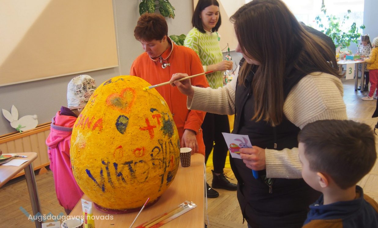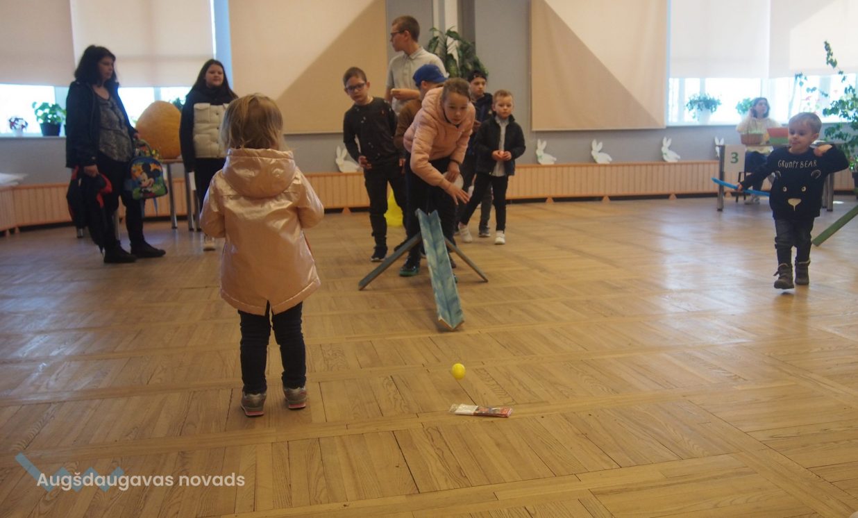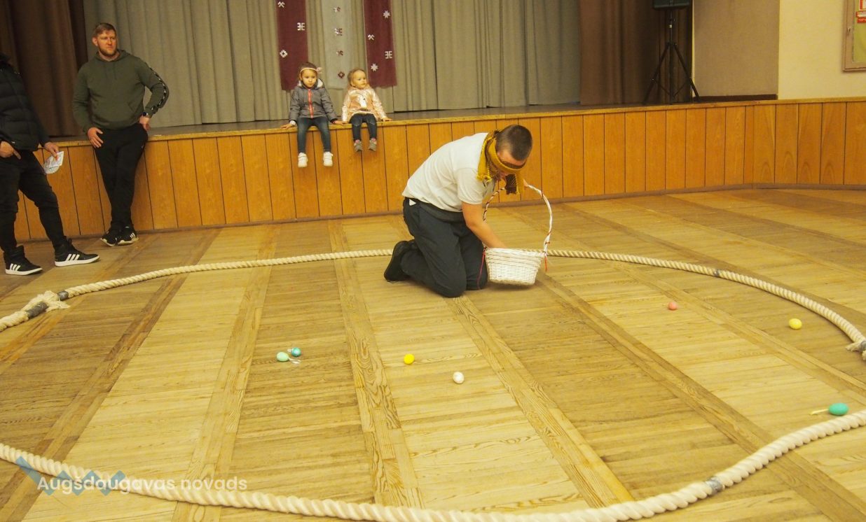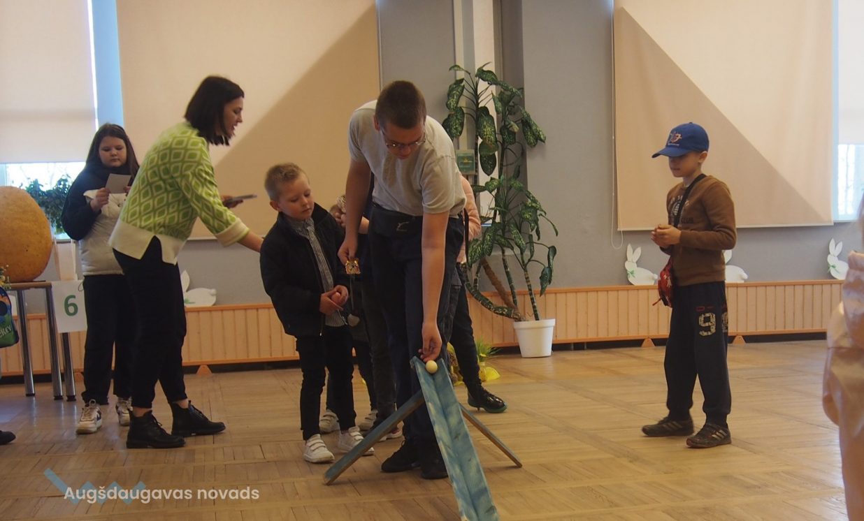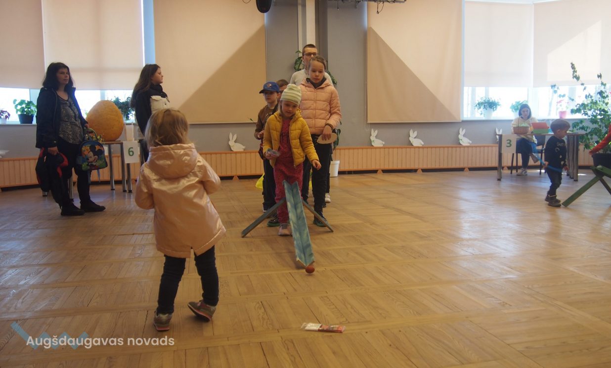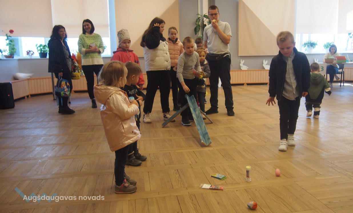 Bērni un pieaugušie aktīvi piedalījās krāsaino olu konkursā, minēja mīklas, izpildīja uzdevumus, pārbaudot savu atmiņu, veiklību un zināšanas. Visjautrākā bija olu ripināšana. Pasākumā darbojās arī radošā darbnīca, bija iespēja uzzīmēt uz sejas zīmējumus ar akvagrimu, iepazīties ar dzīvajiem svētku simboliem – trušiem un cāļiem, apskatīt Jeļenas Požarskas gleznas.