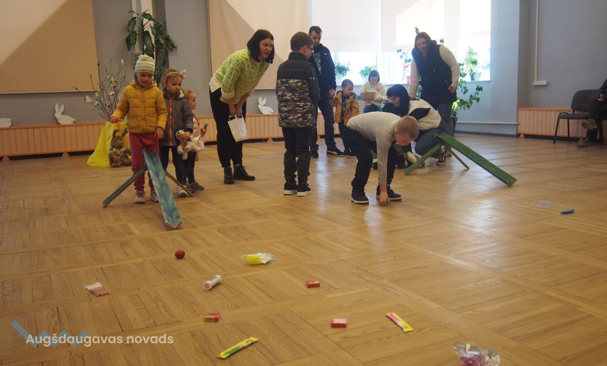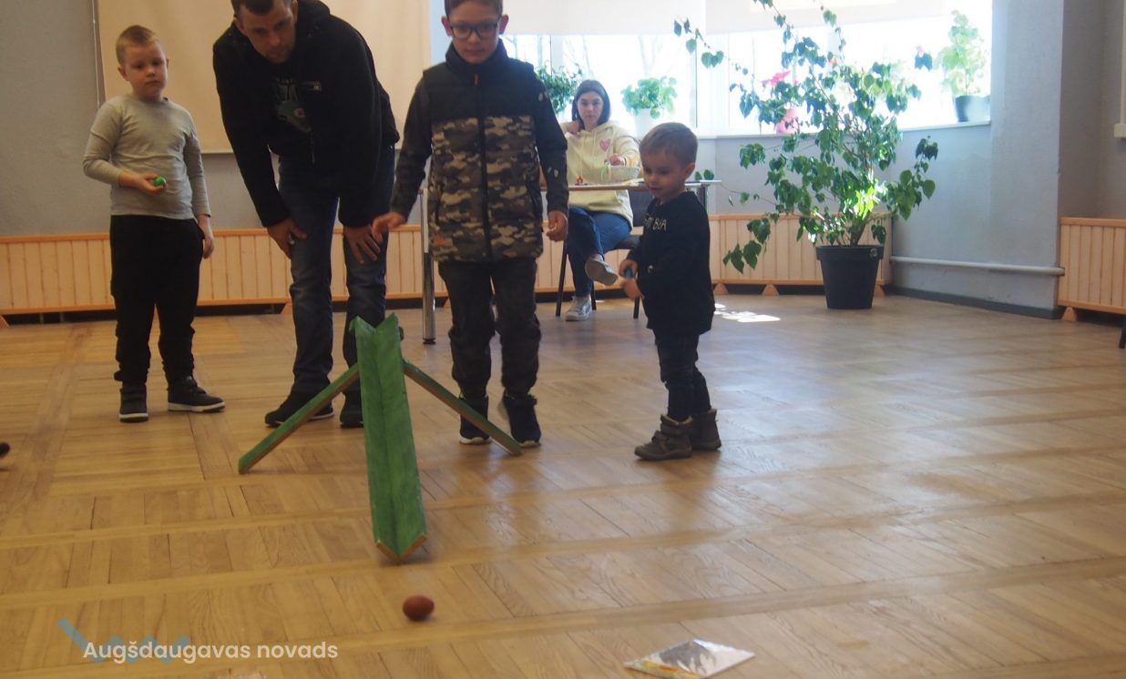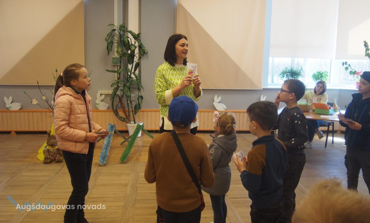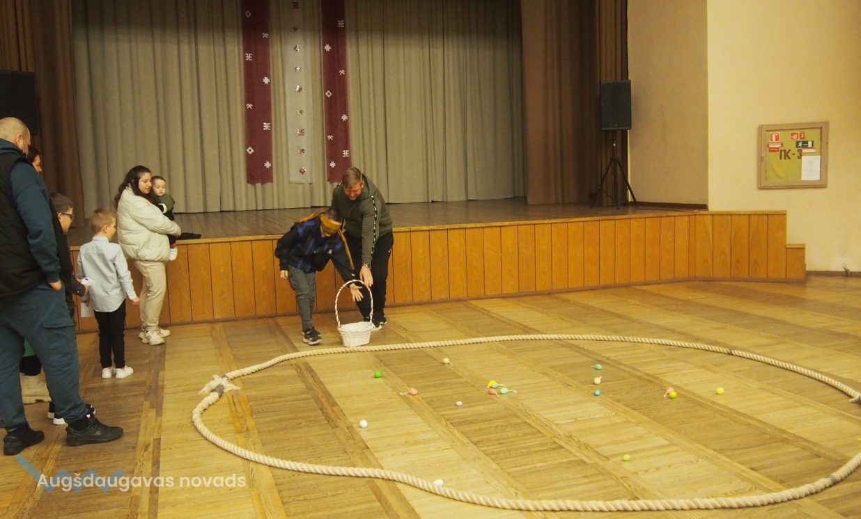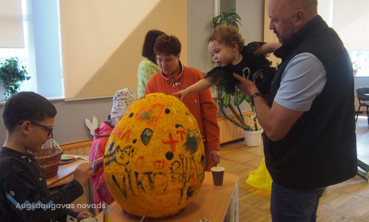Bērni un pieaugušie aktīvi piedalījās krāsaino olu konkursā, minēja mīklas, izpildīja uzdevumus, pārbaudot savu atmiņu, veiklību un zināšanas. Visjautrākā bija olu ripināšana. Pasākumā darbojās arī radošā darbnīca, bija iespēja uzzīmēt uz sejas zīmējumus ar akvagrimu, iepazīties ar dzīvajiem svētku simboliem – trušiem un cāļiem, apskatīt Jeļenas Požarskas gleznas.