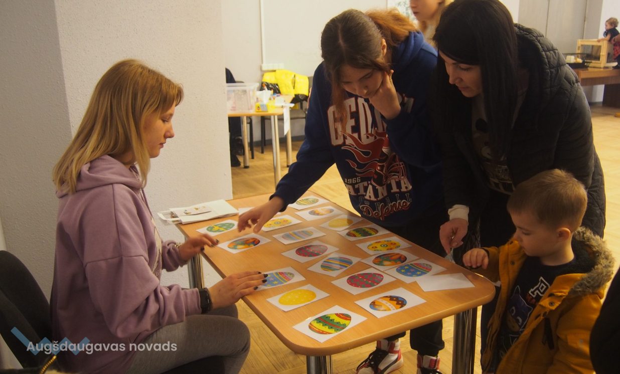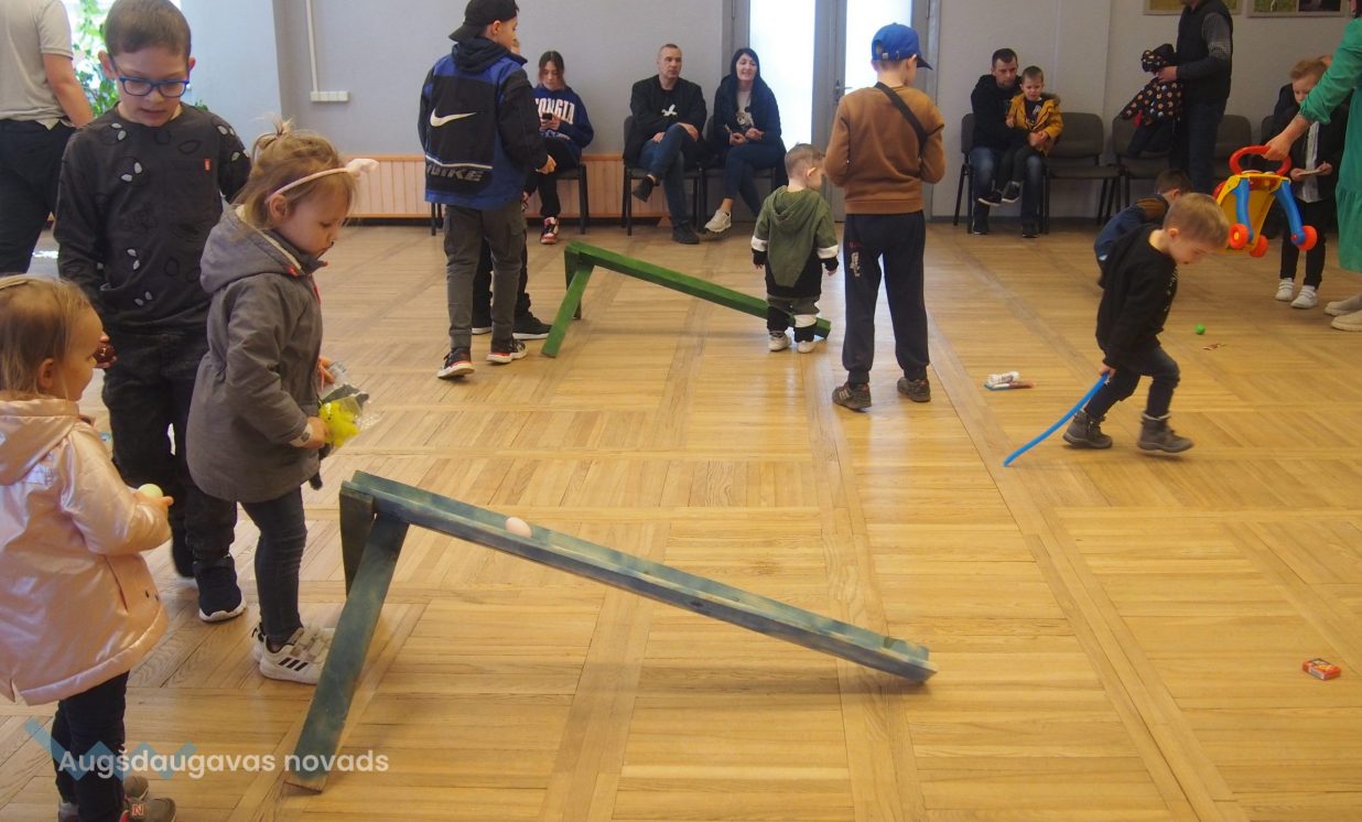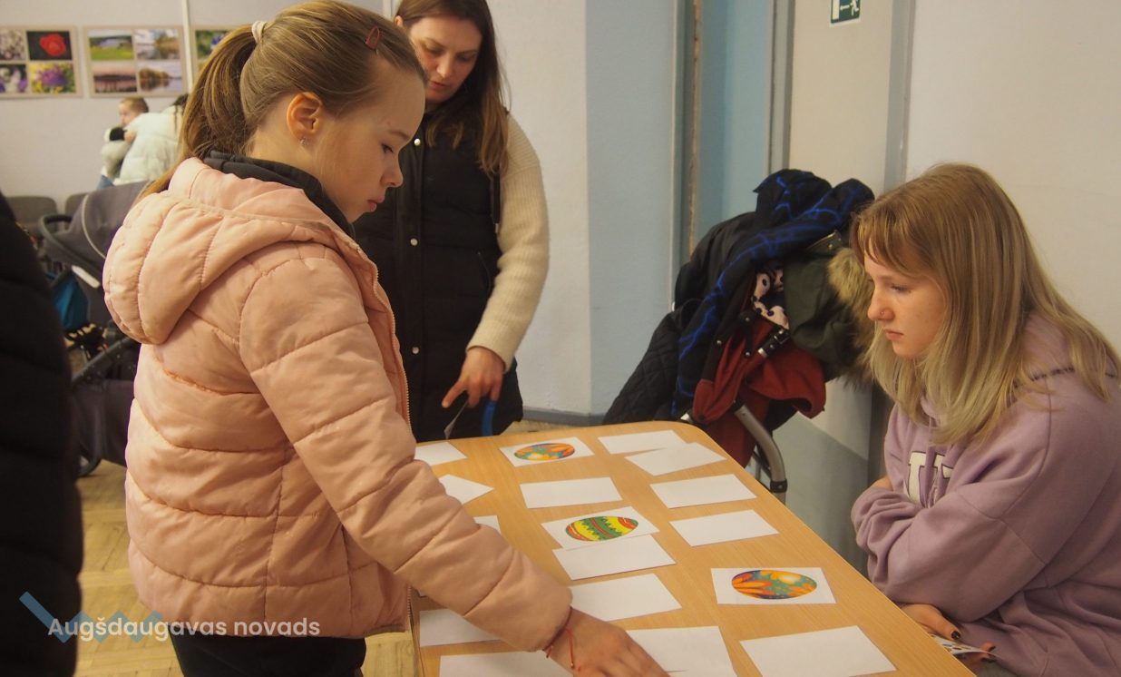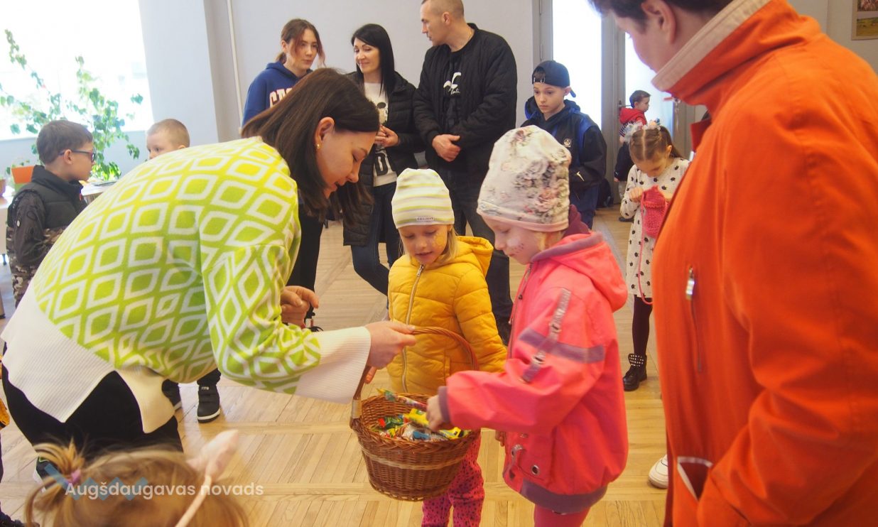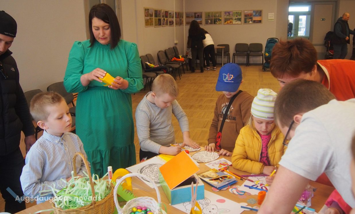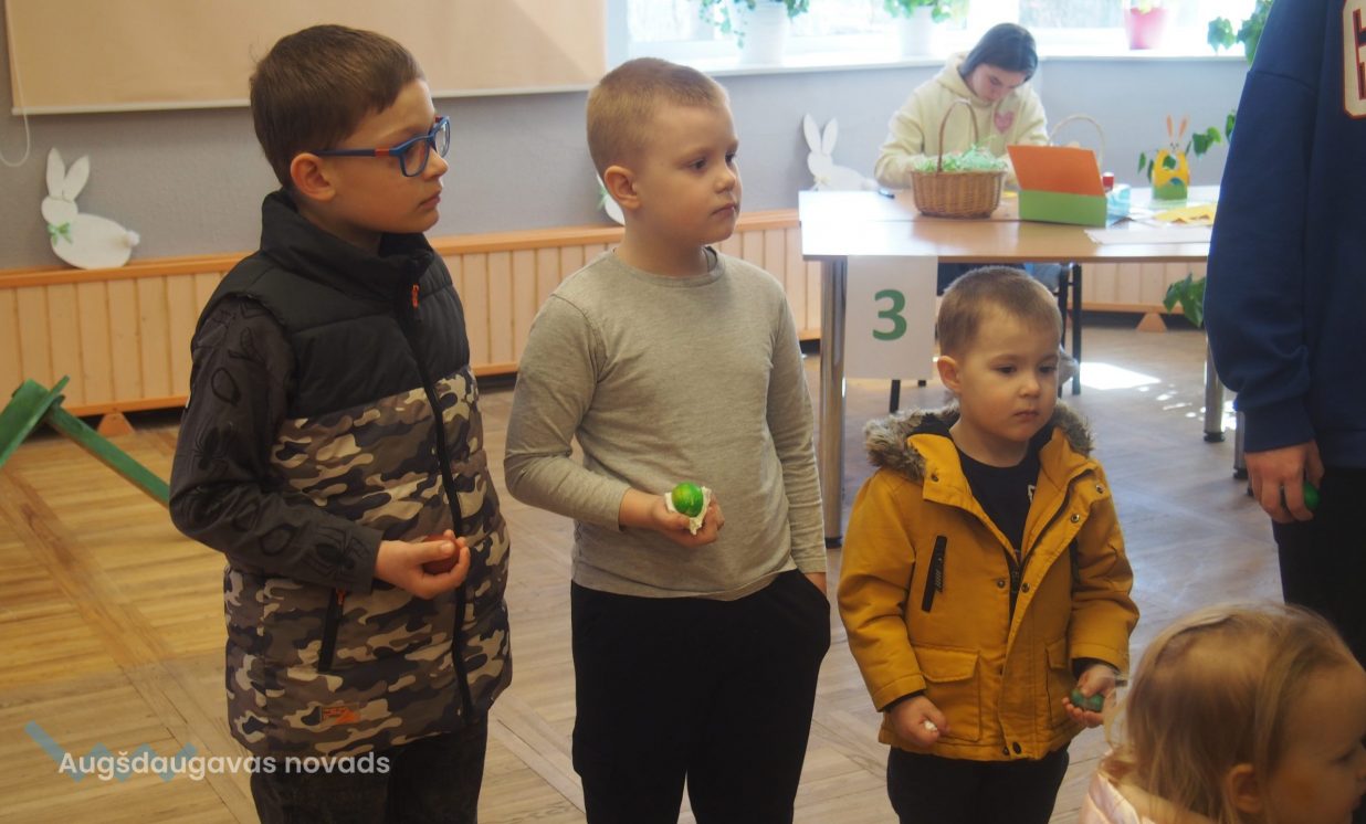 Bērni un pieaugušie aktīvi piedalījās krāsaino olu konkursā, minēja mīklas, izpildīja uzdevumus, pārbaudot savu atmiņu, veiklību un zināšanas. Visjautrākā bija olu ripināšana. Pasākumā darbojās arī radošā darbnīca, bija iespēja uzzīmēt uz sejas zīmējumus ar akvagrimu, iepazīties ar dzīvajiem svētku simboliem – trušiem un cāļiem, apskatīt Jeļenas Požarskas gleznas.