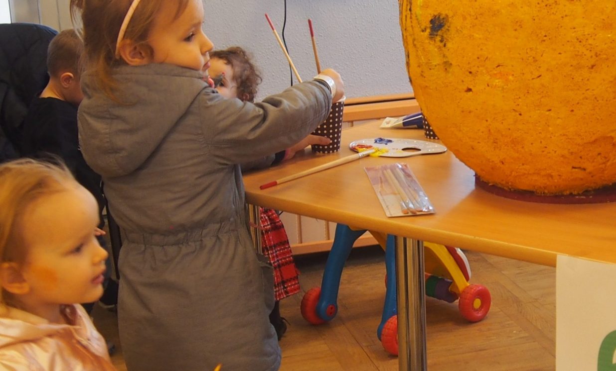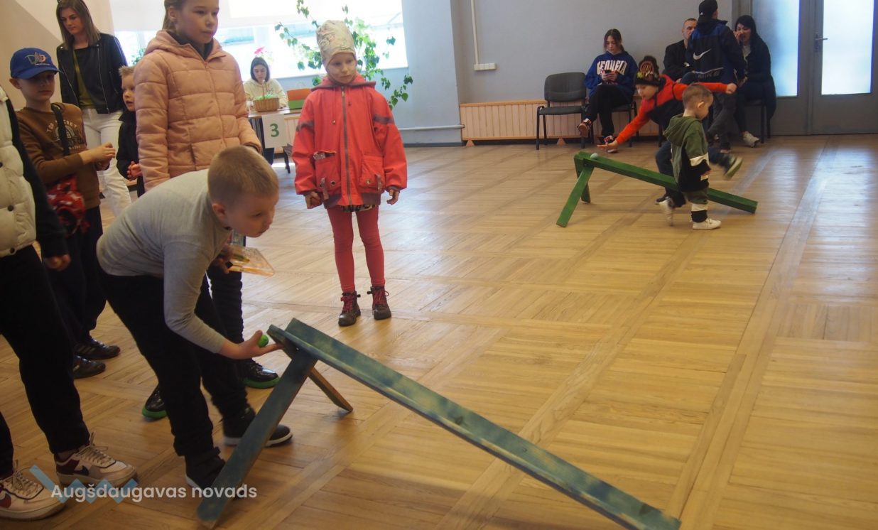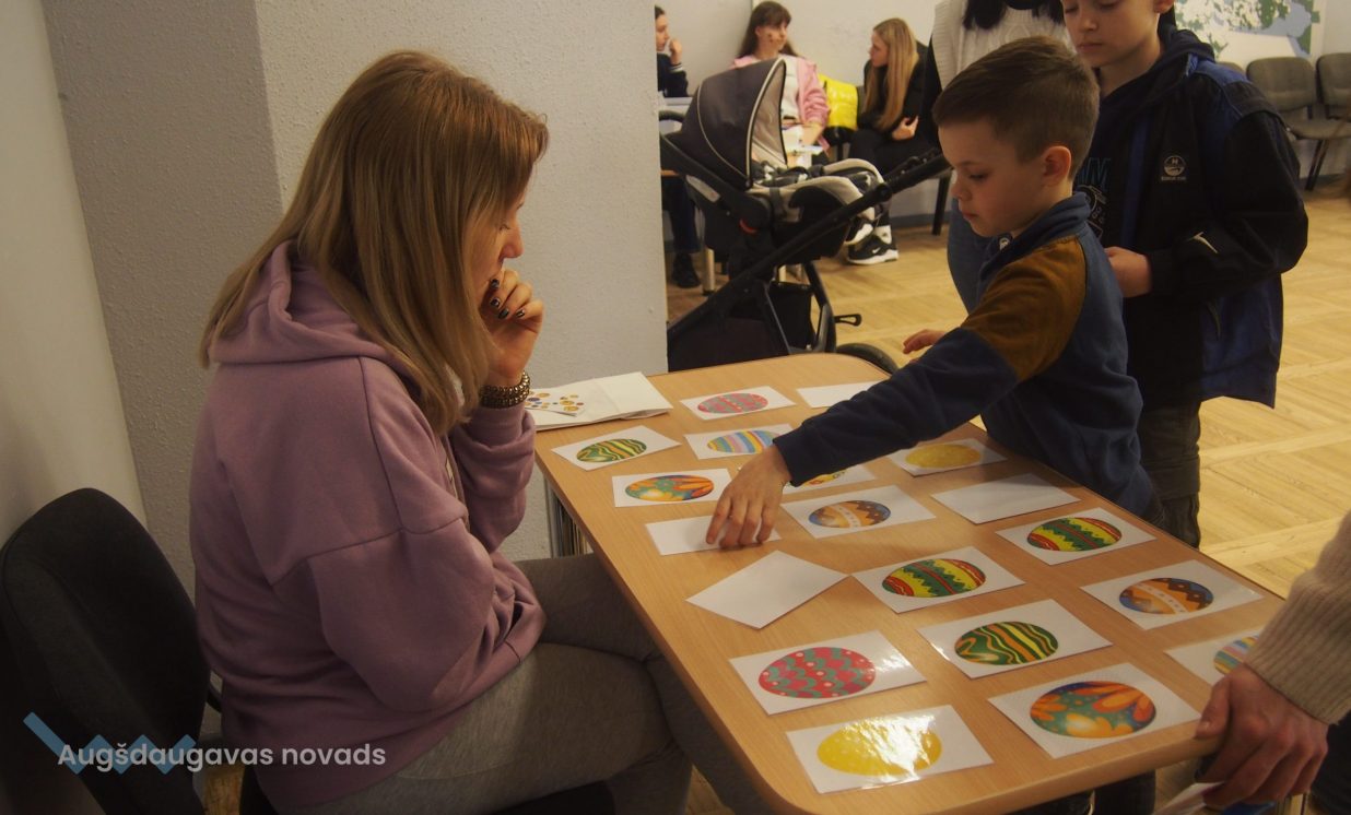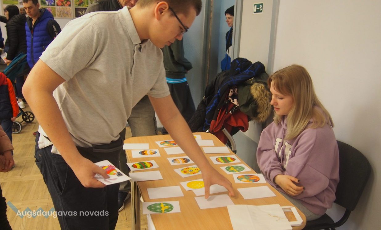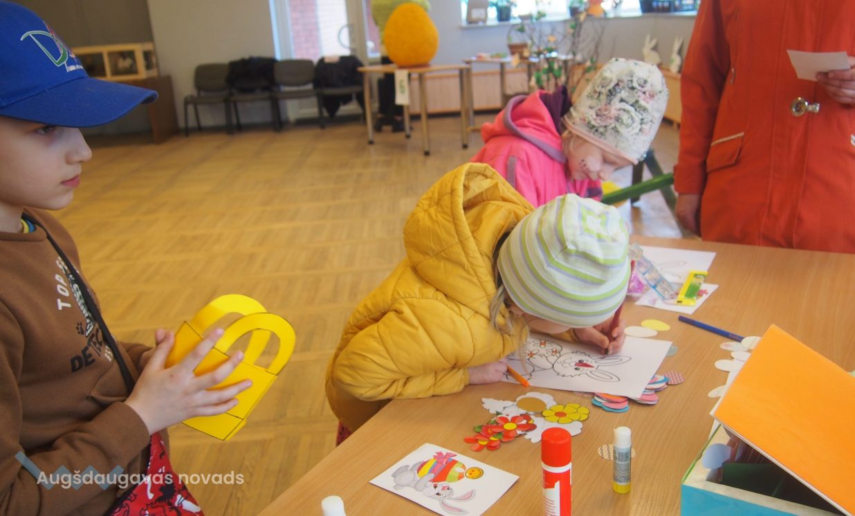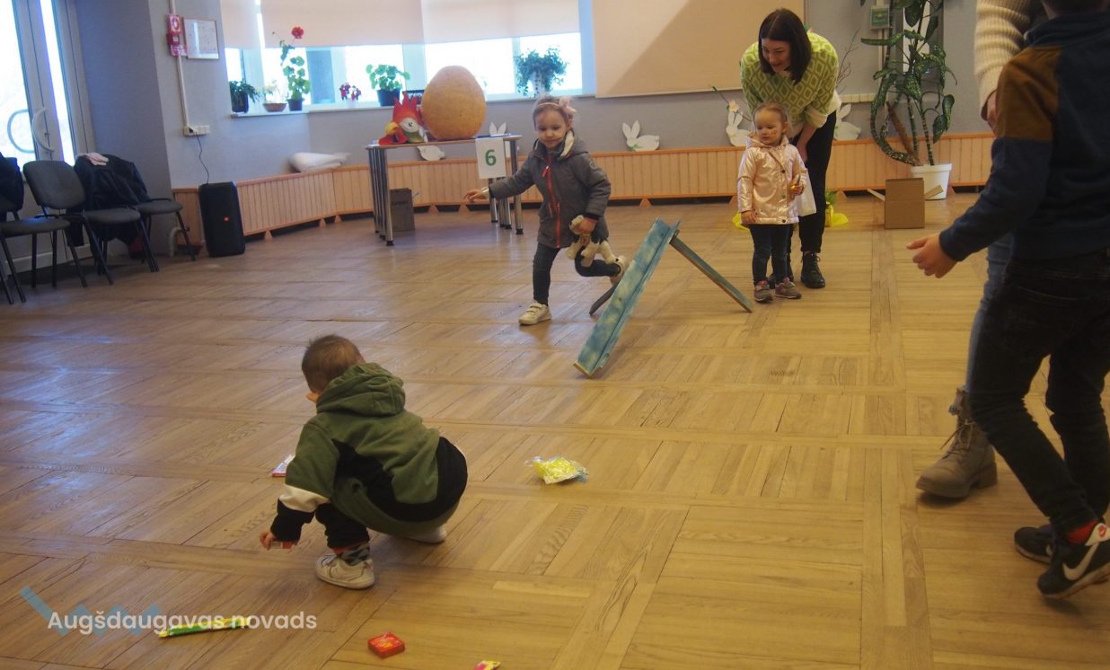 Bērni un pieaugušie aktīvi piedalījās krāsaino olu konkursā, minēja mīklas, izpildīja uzdevumus, pārbaudot savu atmiņu, veiklību un zināšanas. Visjautrākā bija olu ripināšana. Pasākumā darbojās arī radošā darbnīca, bija iespēja uzzīmēt uz sejas zīmējumus ar akvagrimu, iepazīties ar dzīvajiem svētku simboliem – trušiem un cāļiem, apskatīt Jeļenas Požarskas gleznas.
