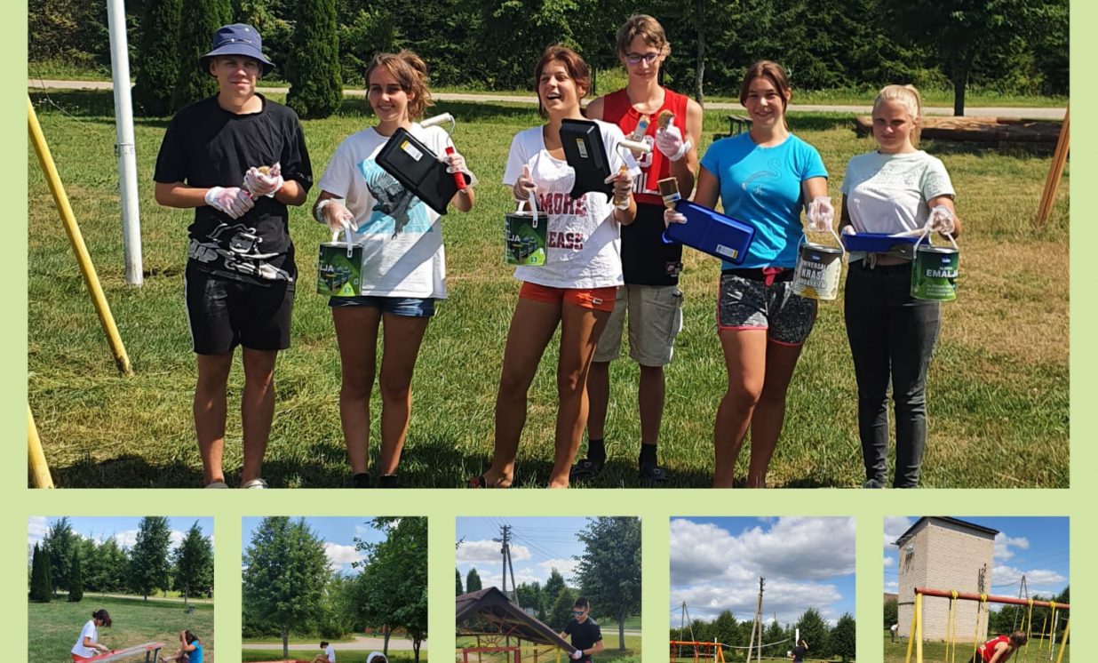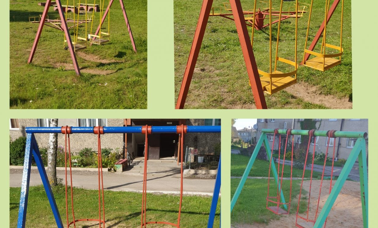 * Sporta un bērnu laukumi Kumbuļu ciemā, kur sakopa laukuma teritoriju, novāca atkritumus, pārkrāsoja šūpoles, atkritumu tvertnes, izremontēja un pārkrāsoja soliņus un citus vingrošanas iekārtus.