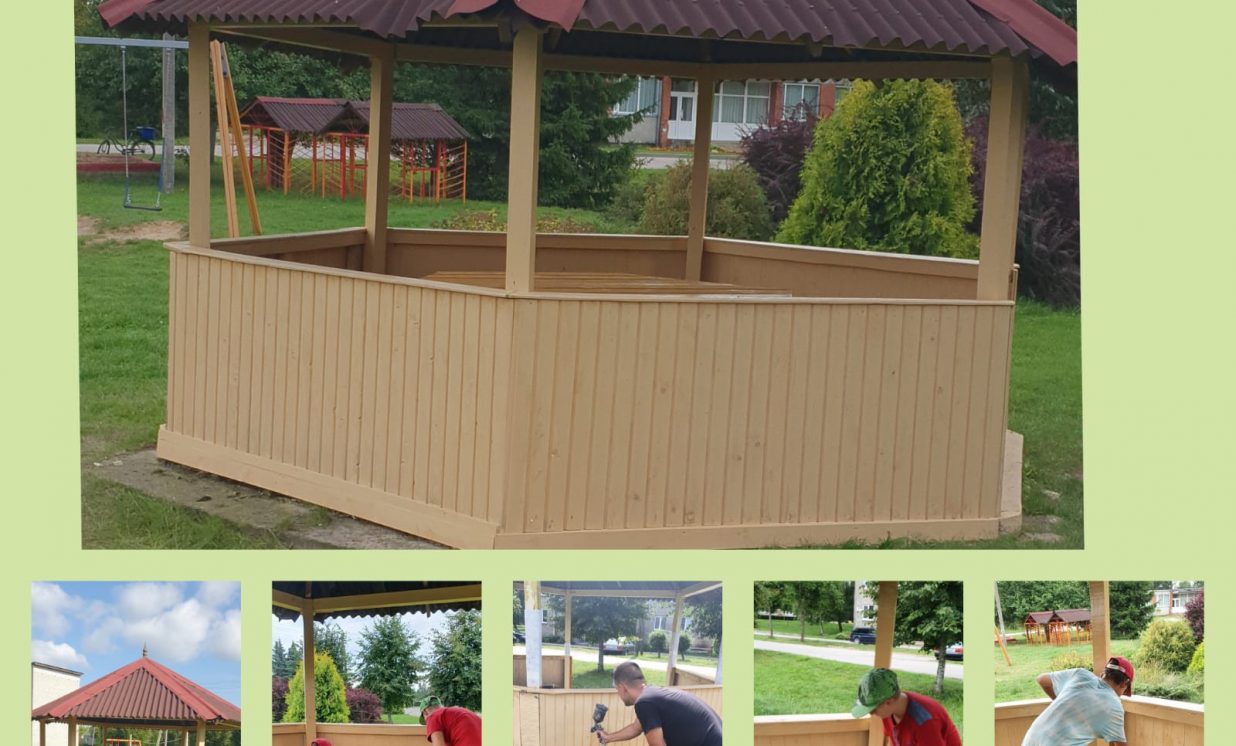 * Demenes ciema lapene, kur nomainīja lapenes sienas (vecas nomainīja uz jaunām), izlīdzināja grīdas betona segumu, pārkrāsoja lapeni, izgatavoja un uzstādīja jaunu galdu.