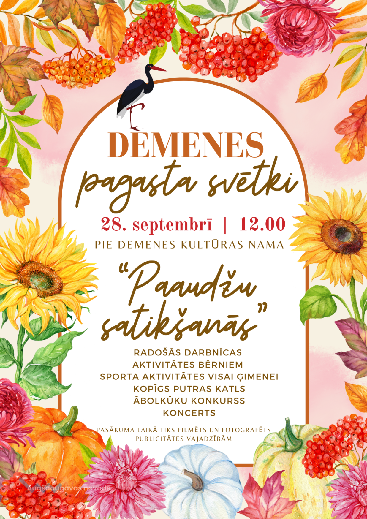 28. septembrī plkst. 12.00 pie Demenes Kultūras nama (Briģenes iela 2) tiks ieskandināti Demenes pagasta svētki, kuros tiksies dažādu paaudžu pārstāvji.