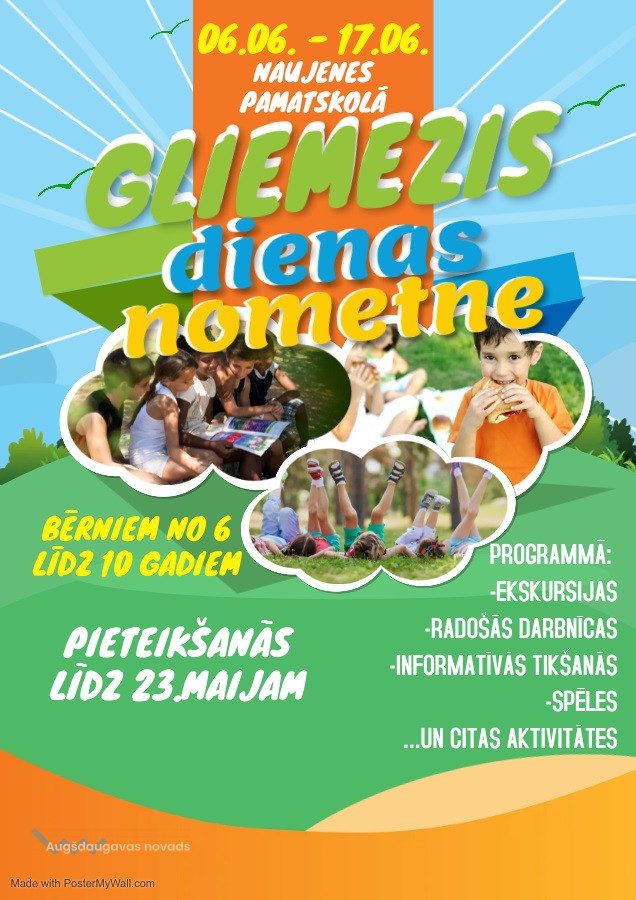 Noteikumi: Augšdaugavas novadā deklarētiem bērniem. Gadījumā, ja pieteikumus skaits pārsniegs iespējamo dalībnieku skaitu, prioritāte tiks dota bērniem, kas deklarēti Naujenes pagastā vai mācās kādā no Augšdaugavas novada izglītības iestādēm.