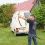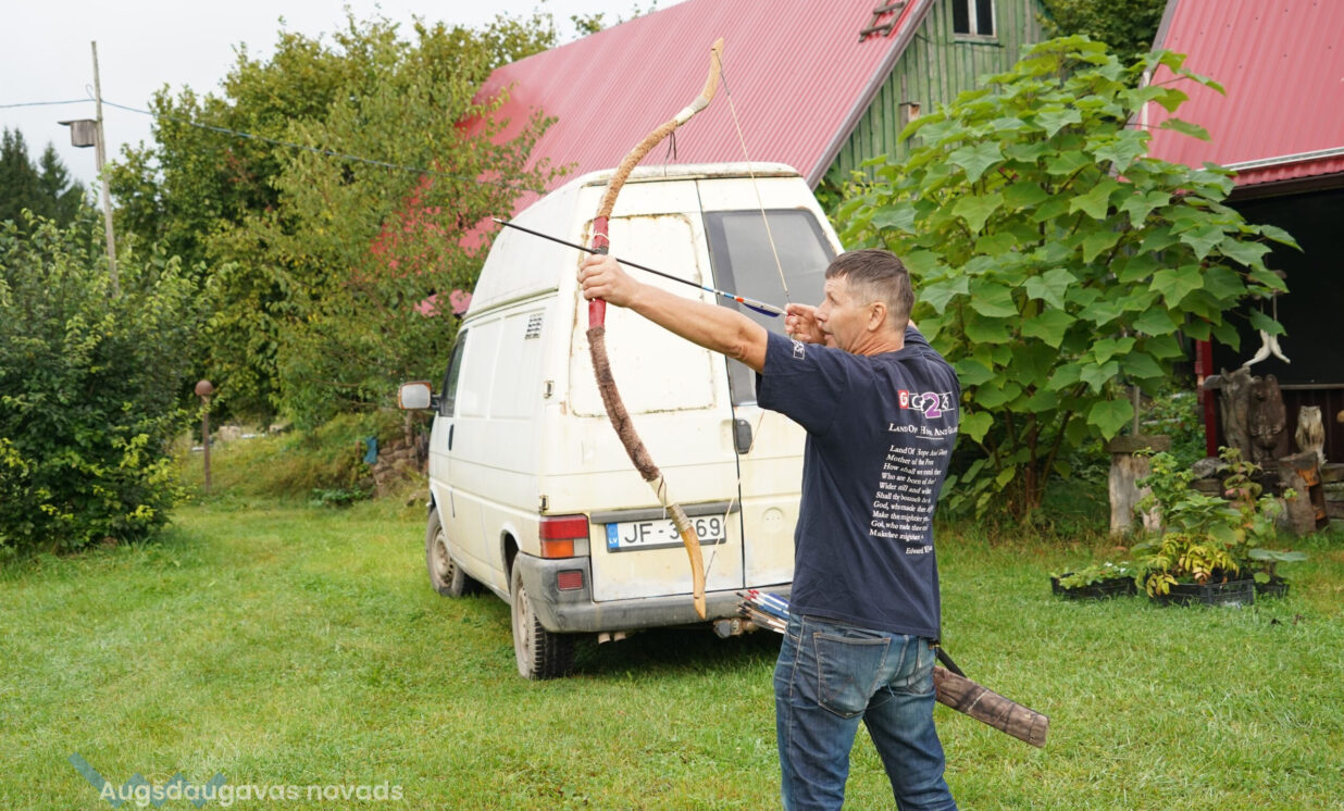 Īpašu vietu viņa daiļradē ieņem paša gatavoti loki un arbaleti. Tie top uz pasūtījumu. “Sākās viss ar laminētajiem lokiem, bet tiem nevar dot lielu garantiju, tāpēc sāku taisīt kompozītlokus,” stāsta Varis un nodemonstrē loka šaušanas meistarību.