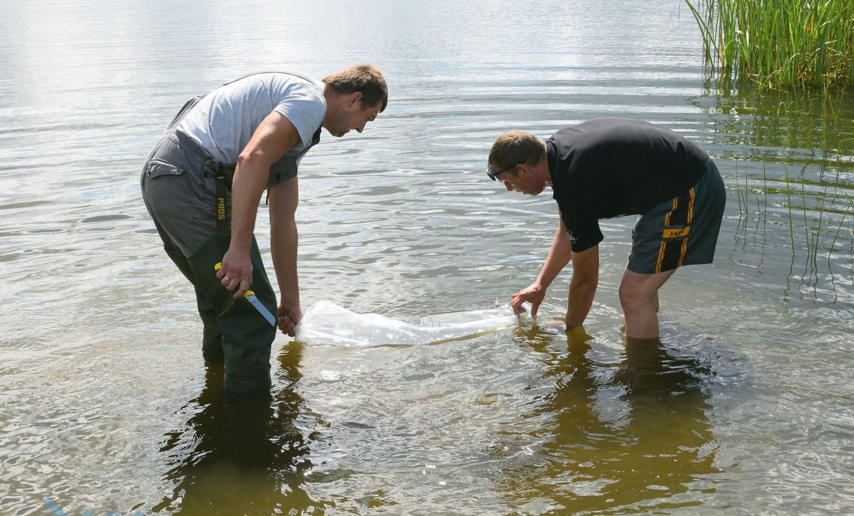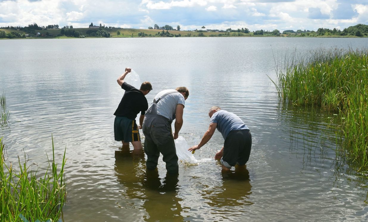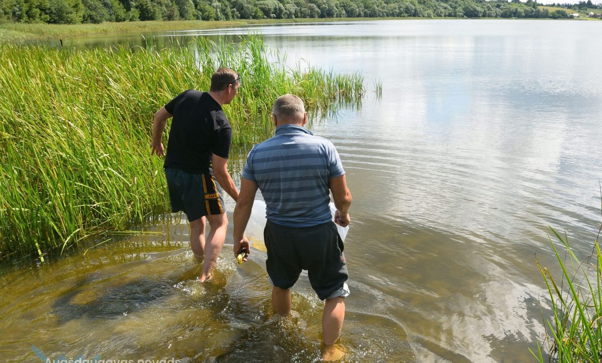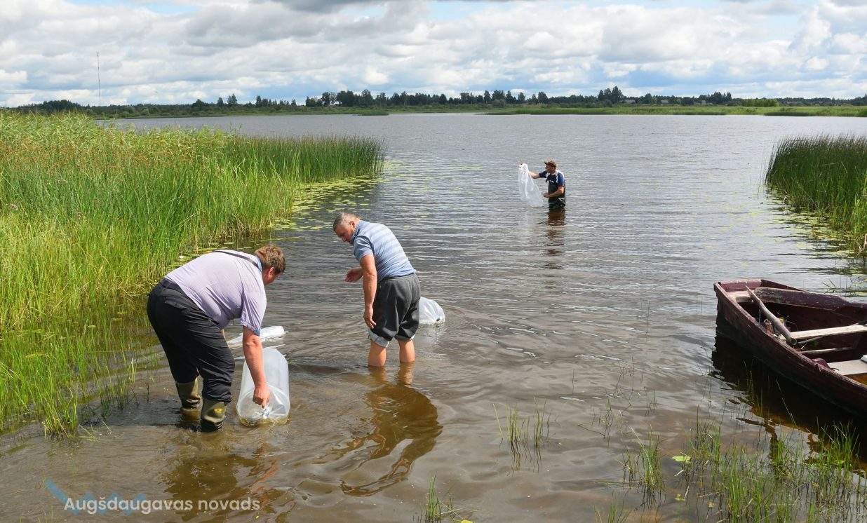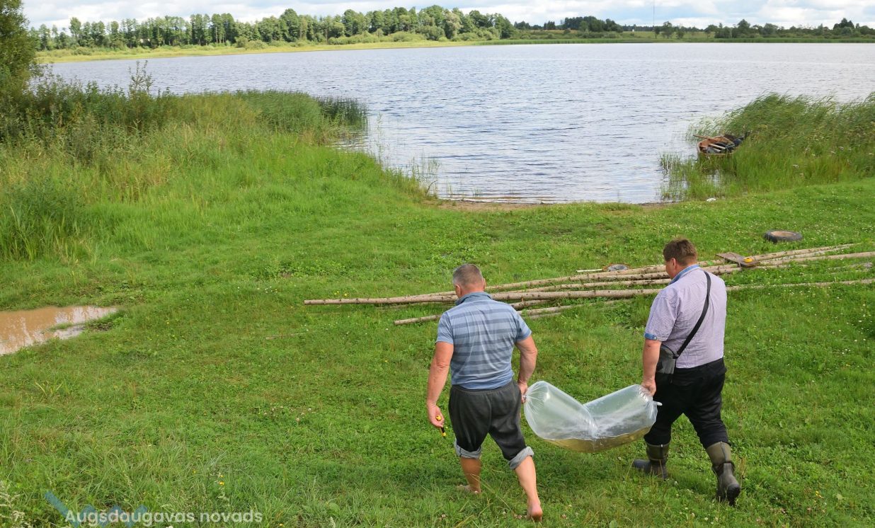 Zivju mazuļu ielaišanas procesā piedalījās arī Augšdaugavas novada domes Vides pārvaldības speciālists ezeru apsaimniekošanā, Valsts vides dienesta zivju inspektors un PVD pārstāvis.
