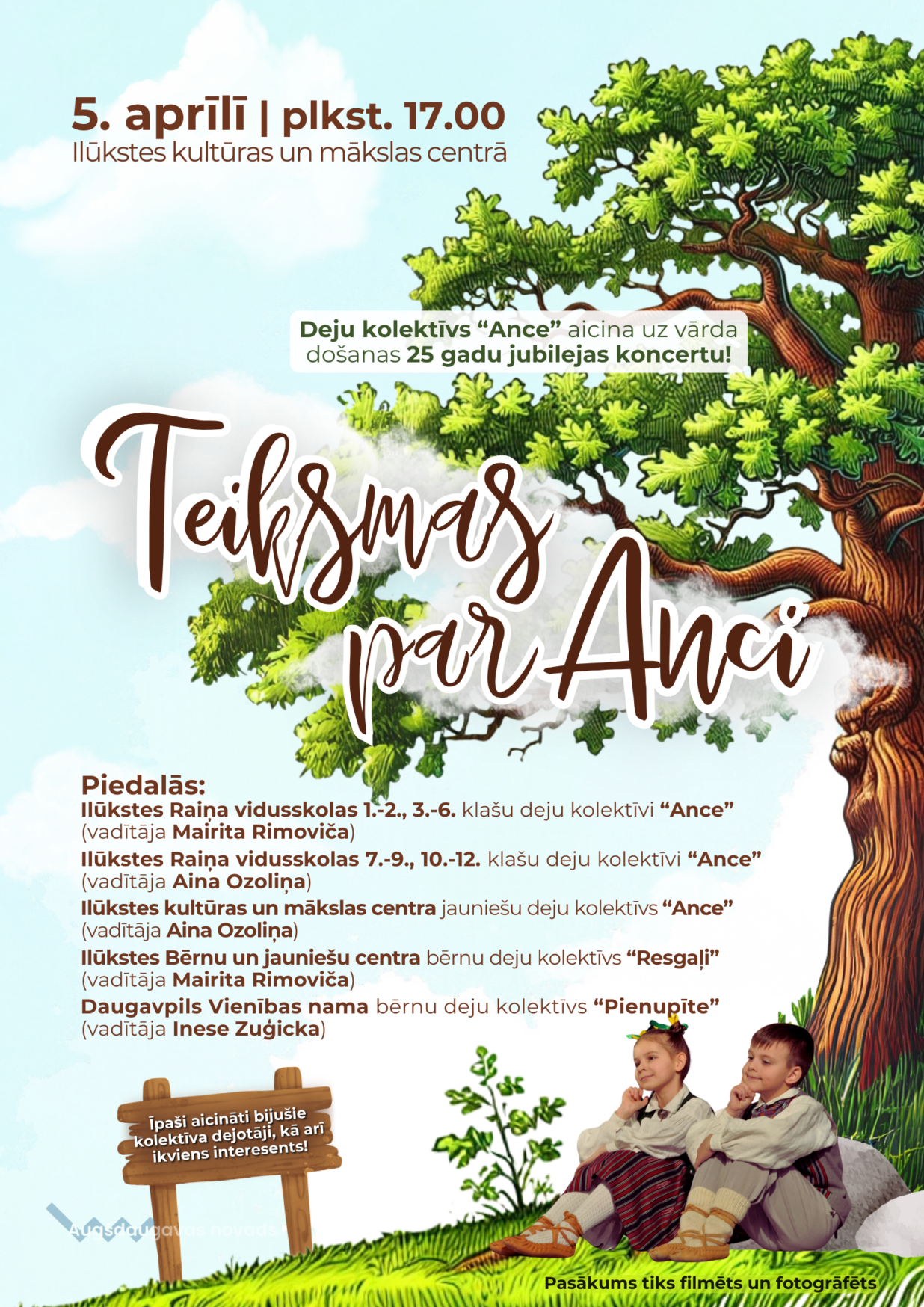 5. aprīlī 17.00 Ilūkstes Kultūras un mākslas centrā satiksies mazi un lieli dejotāji, lai svinētu deju kolektīva "Ance" vārda došanas 25 gadu jubileju.