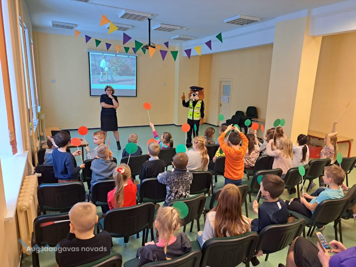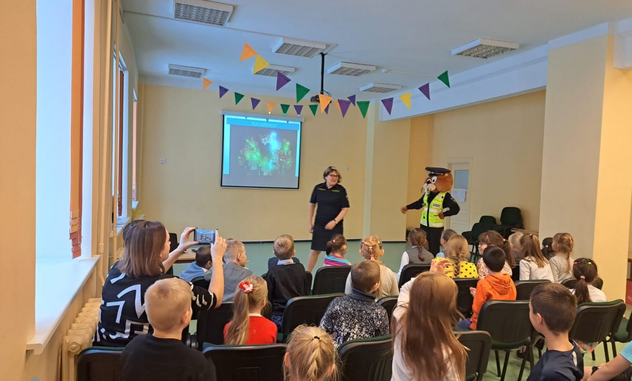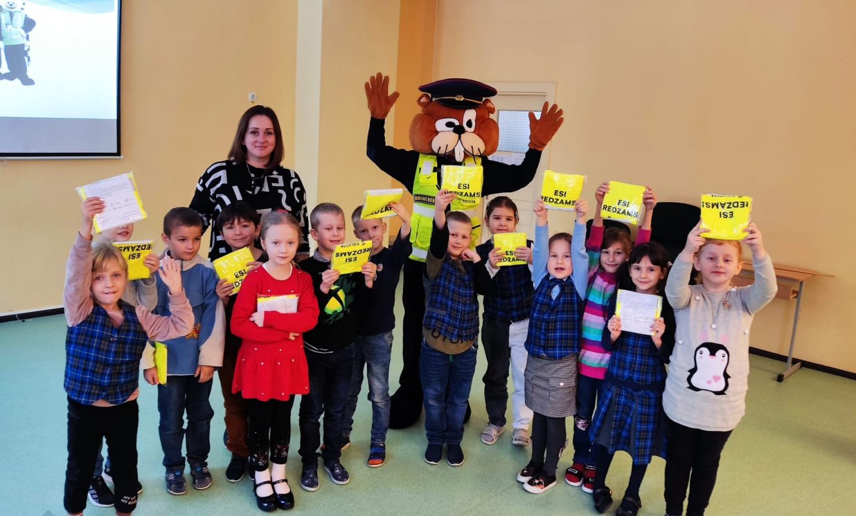 9.decembrī uz skolu atbrauca policijas darbiniece ar savu kolēģi Bebru Bruno. Policijas pārstāvis sākumskolas skolēniem pastāstīja par drošības noteikumiem uz ceļa. Skolēni uzzināja, kā pārvietoties pa ceļu, ja nav trotuāra, vai viņiem ir atstarotāji. Kāpēc tumšā laikā nepieciešams atstarotājs, kur drošāk braukt ar velosipēdu. Sākumskolas skolēni arī padalījās ar savām zināšanām un pieredzi par ceļa satiksmes drošības noteikumu ievērošanu. Bebrs Bruno ar spēles palīdzību pārbaudīja, kā 1.-4. klases skolēni uzmanīgi klausījās teikto. Pasākuma beigās visiem skolēniem bija iespēja nobildēties ar Bebru Bruno, kā arī saņemt dāvanas: atstarojošo vesti vai sporta somu ar atstarojošajiem elementiem.