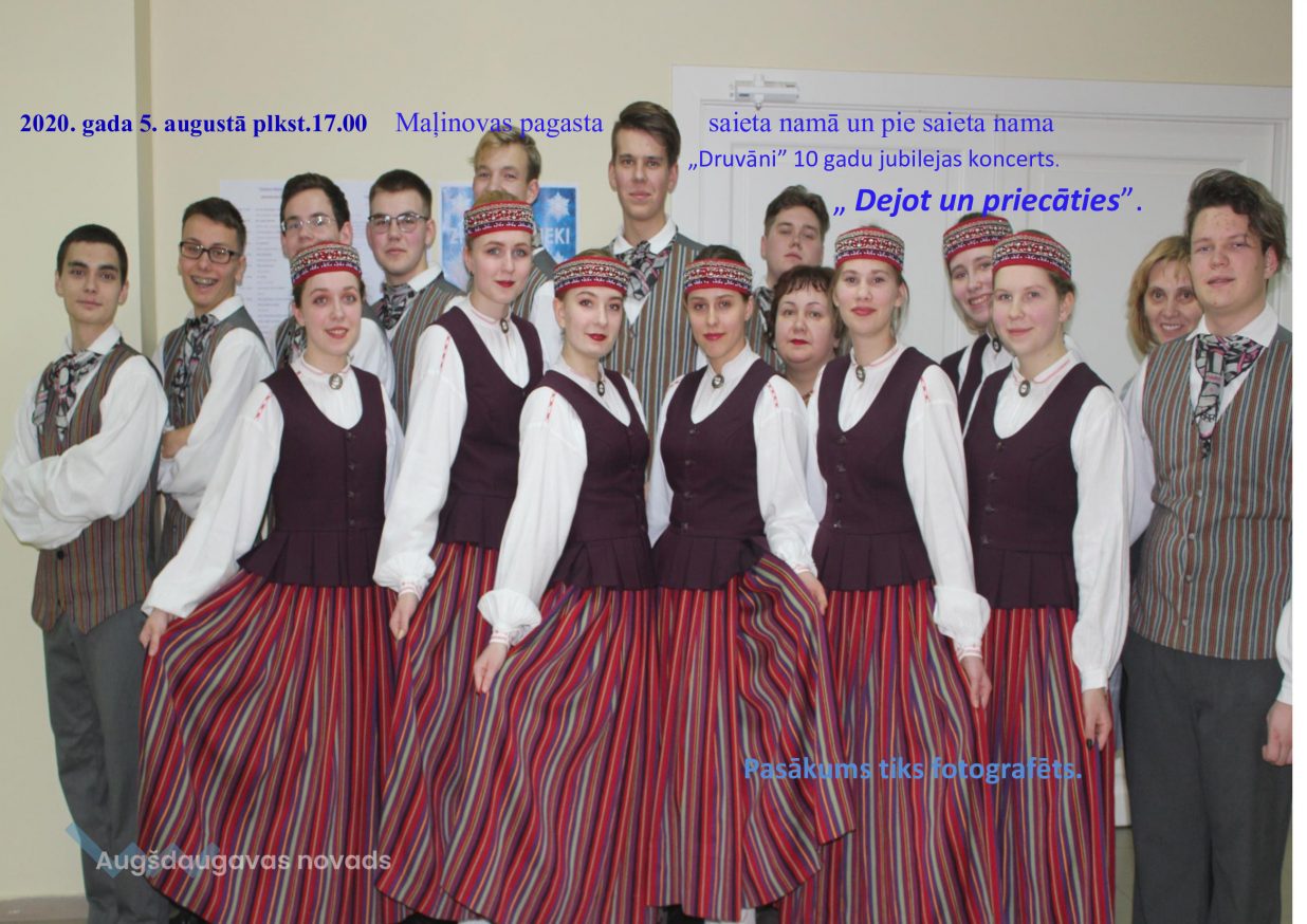 “Druvānu” 10 gadu jubilejas koncerts20.07.2020AKTUĀLI 2020. gada 5. augustā plkst. 17.00, Maļinovas pagasta saieta namā (un pie saieta nama) norisināsies "Druvānu" 10 gadu jubilejas koncerts "Dejot un priecāties". Aicinām interesentus!Informējam, ka pasākumā tiks fotografēts.