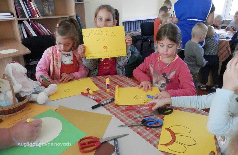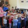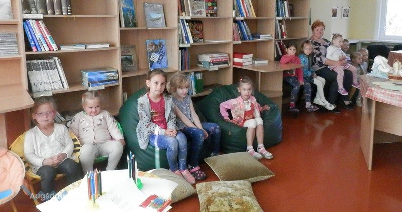 Ceturtdienas rītā bibliotēkā pulcējās vismazākie lasītāji no bērnudārza, lai svinētu dzejoļiem svētkus pasākumā “Jautrais ceļojums un satikšanās ar turku pupu”.