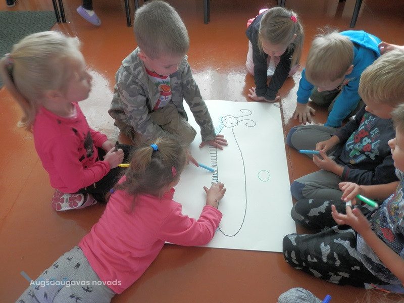 Bērni ar lielu interesi un prieku gatavoja radošo mājasdarbu, kopā ar audzinātājām Ināru Ašķeļjaņecu un Sarmīti Moli lasīja un paši ilustrēja variācijas par Jāņa Petera dzejoli “ZĪMĒJUMI”, un uzstājās ar krāšņi ilustrētu priekšnesumu. Tad visi kopā klausījās un zīmēja ilustrācijas Ojāra Vācieša dzejolim par simtkāji, Katrīnas Paulas Safronovas dzejolim par ziliem brīnumiem. Vislielāko un saldāko prieku mazajiem māksliniekiem sagādāja dzejoļa “Vectēvs” ilustrēšana: