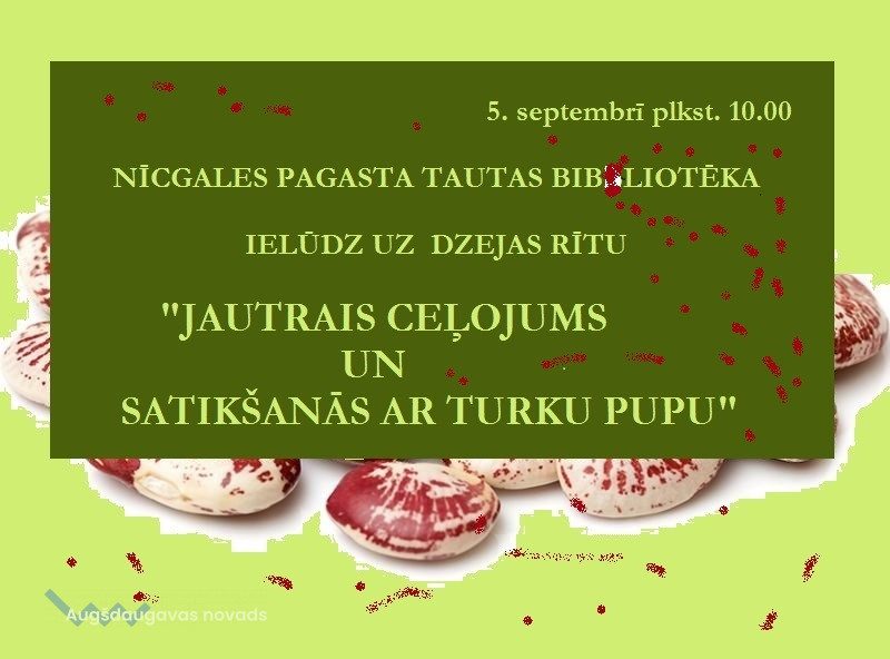 5. septembrī Nīcgales pagasta tautas bibliotēka rīko pirmsskolas vecuma lasītājiem dzejas rītu “Jautrais ceļojums un satikšanās ar turku pupu.