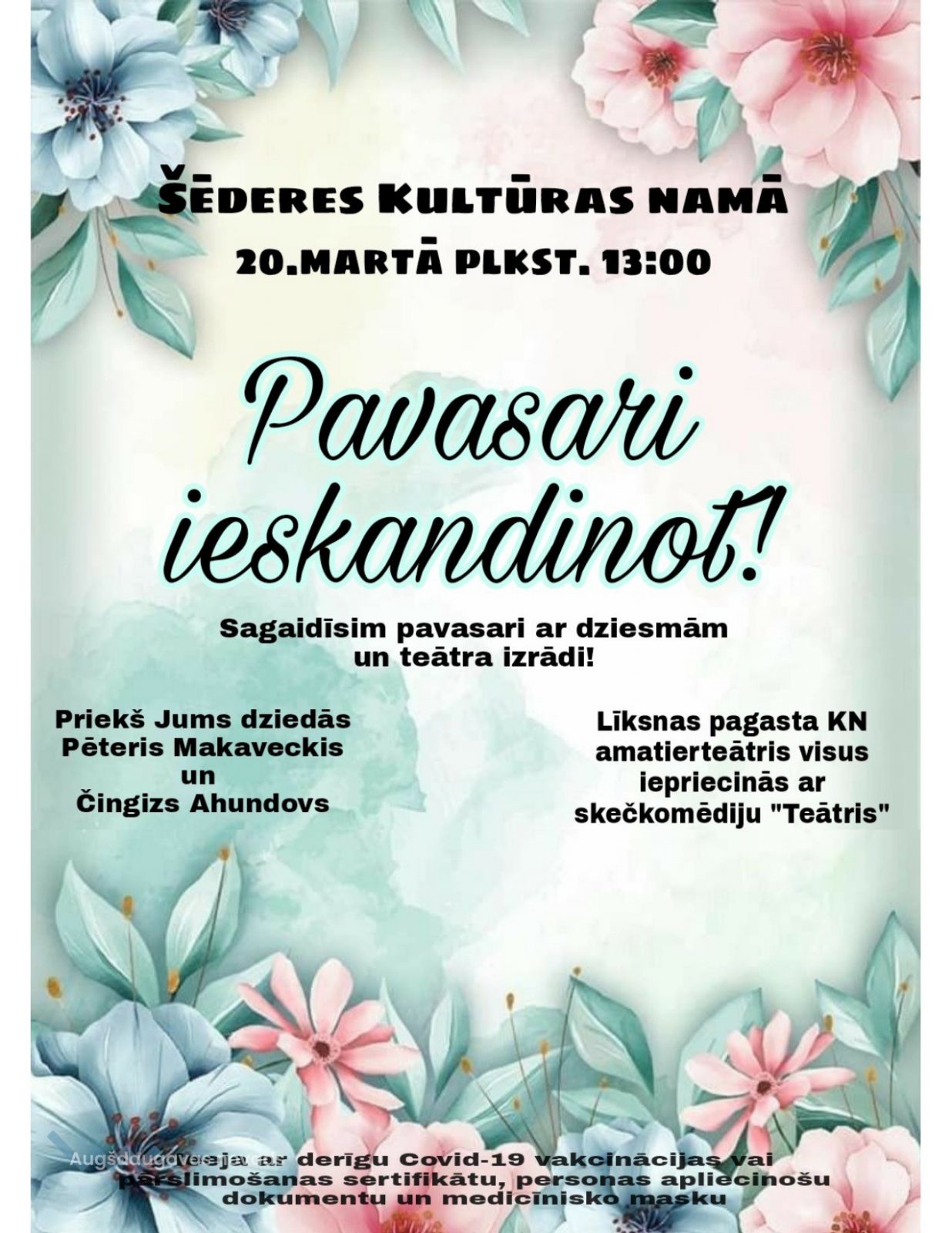 20. martā Šēderes Kultūras namā kopīgi ieskandināsim pavasari!