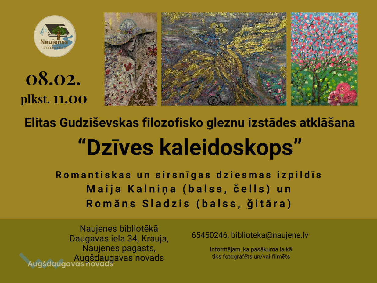 8. februārī plkst. 11:00 Naujenes bibliotēkā tiks atklāta amatiermākslinieces Elitas Gudziševskas personālizstāde "Dzīves kaleidoskops".